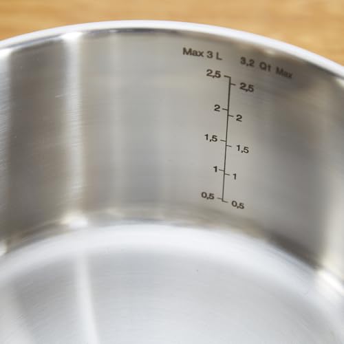 - Integrierte Messskala: Eine gut sichtbare Skala an der Topf-Innenseite erlaubt das präzise Abmessen von Zutaten direkt im Topf und macht einen separaten Messbecher überflüssig.