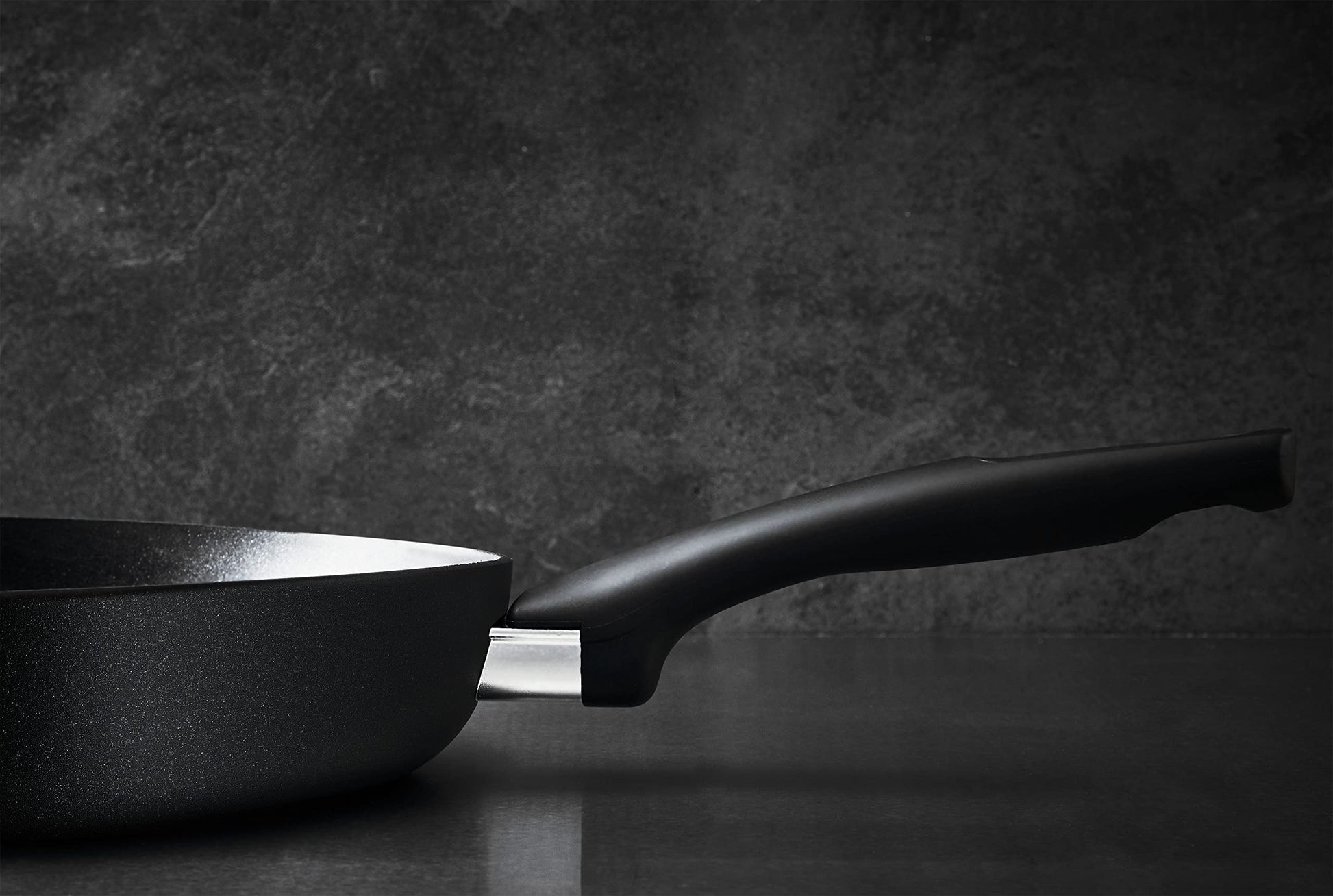 - Komplette Antihaft-Ausstattung: Dank der Beschichtung sowohl innen als auch aussen lassen sich die Pfannen täglich schnell und ohne grossen Aufwand säubern.