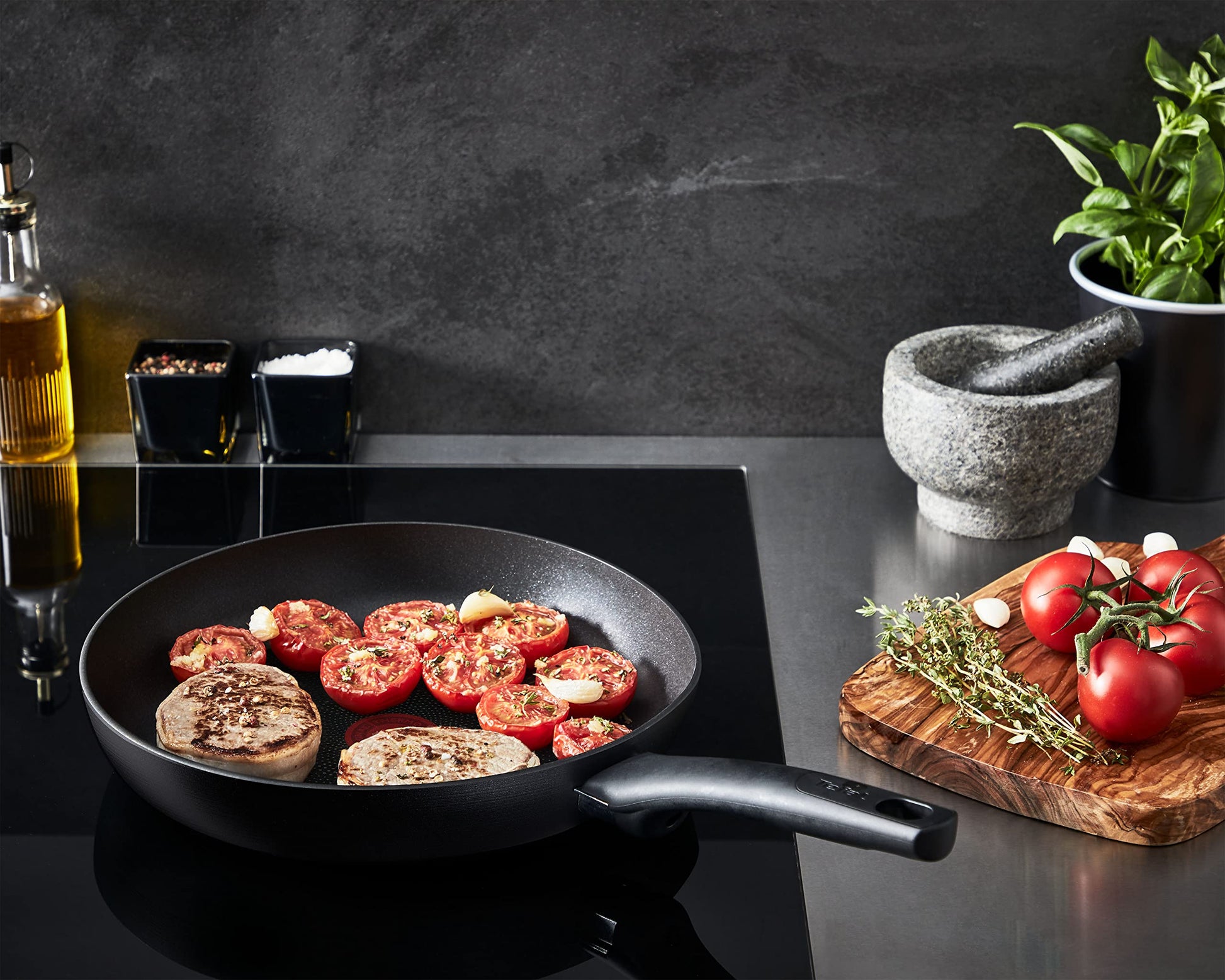 Es kombiniert eine extrem widerstandsfähige Antihaftversiegelung, die 3x länger hält als die Standardversiegelung von Tefal, mit intelligenter Technologie. Das Thermo-Signal™ zeigt die ideale Brattemperatur an und der Thermo-Fusion+ Boden sorgt für schnelles, gleichmässiges Erhitzen auf allen Herdarten, inklusive Induktion.
