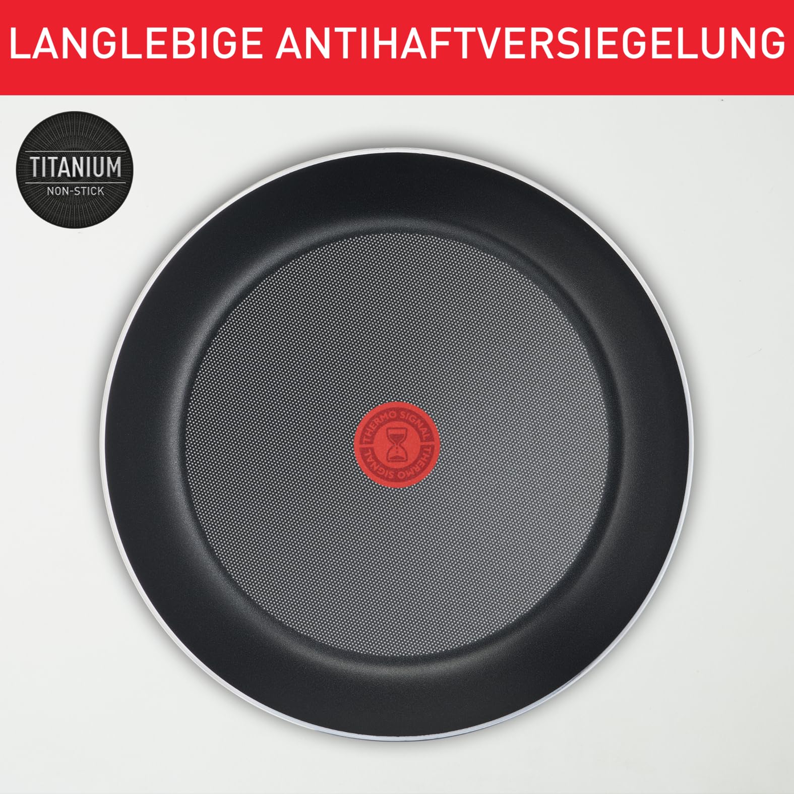 - Hochwertige Antihaftversiegelung: Die langlebige Titanium-Antihaftversiegelung verhindert das Anhaften von Speisen und sorgt für eine mühelose Reinigung.
