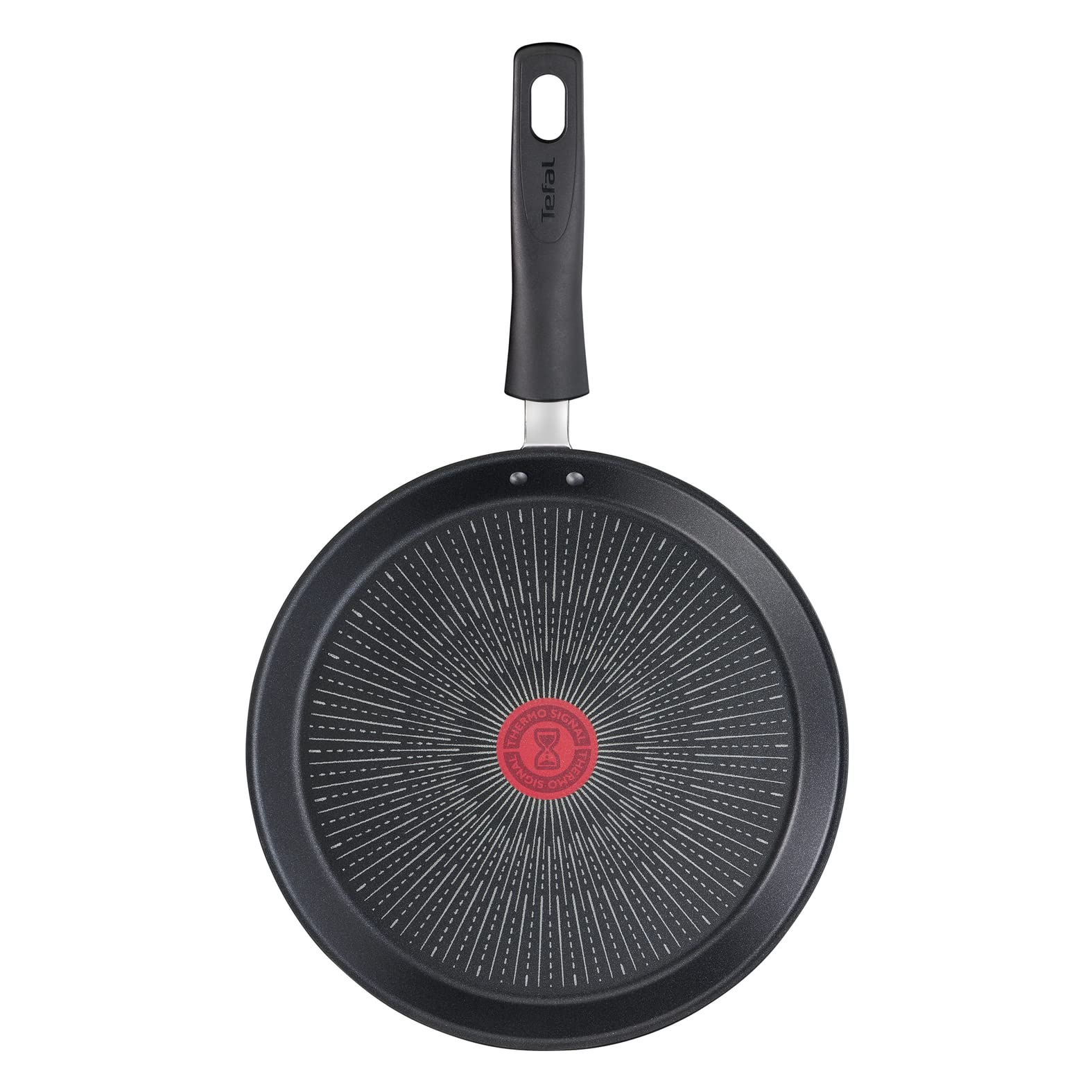 Das Thermo-Signal™ ist ein in die Pfannenmitte integrierter Wärmeindikator. Er färbt sich einheitlich rot, sobald die Pfanne die ideale Temperatur für das Anbraten erreicht hat. Dies garantiert Ihnen perfekte, gleichmässige Bratergebnisse bei Crêpes und Pancakes.