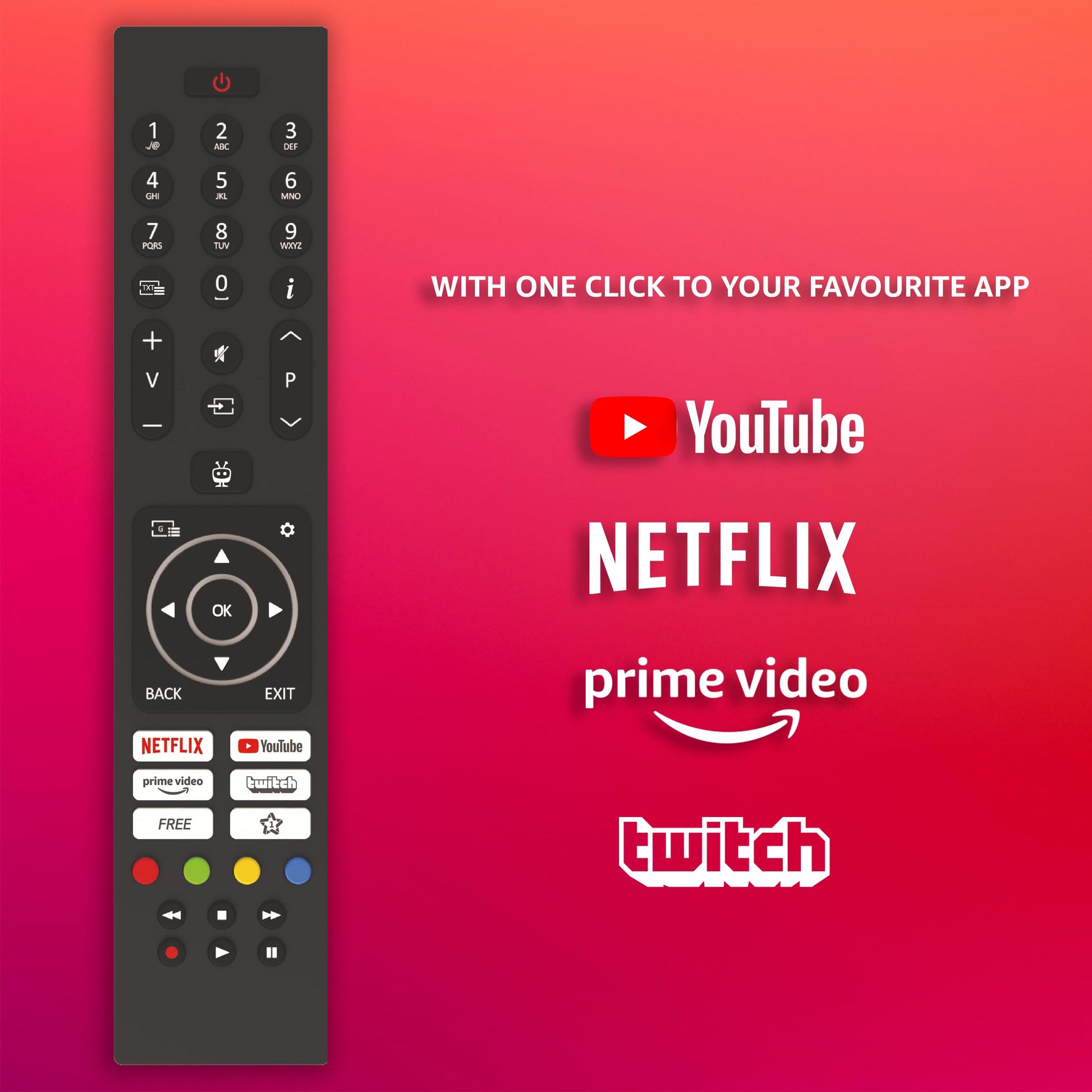 Mit diesem Smart TV steht Ihnen eine Welt voller Unterhaltung offen. Greifen Sie direkt auf die beliebtesten Streaming-Dienste wie Prime Video, Netflix, Disney+, YouTube und viele weitere zu. Ob Serien, Filme oder Sport – Ihre Lieblingsinhalte sind nur einen Klick oder Sprachbefehl entfernt.