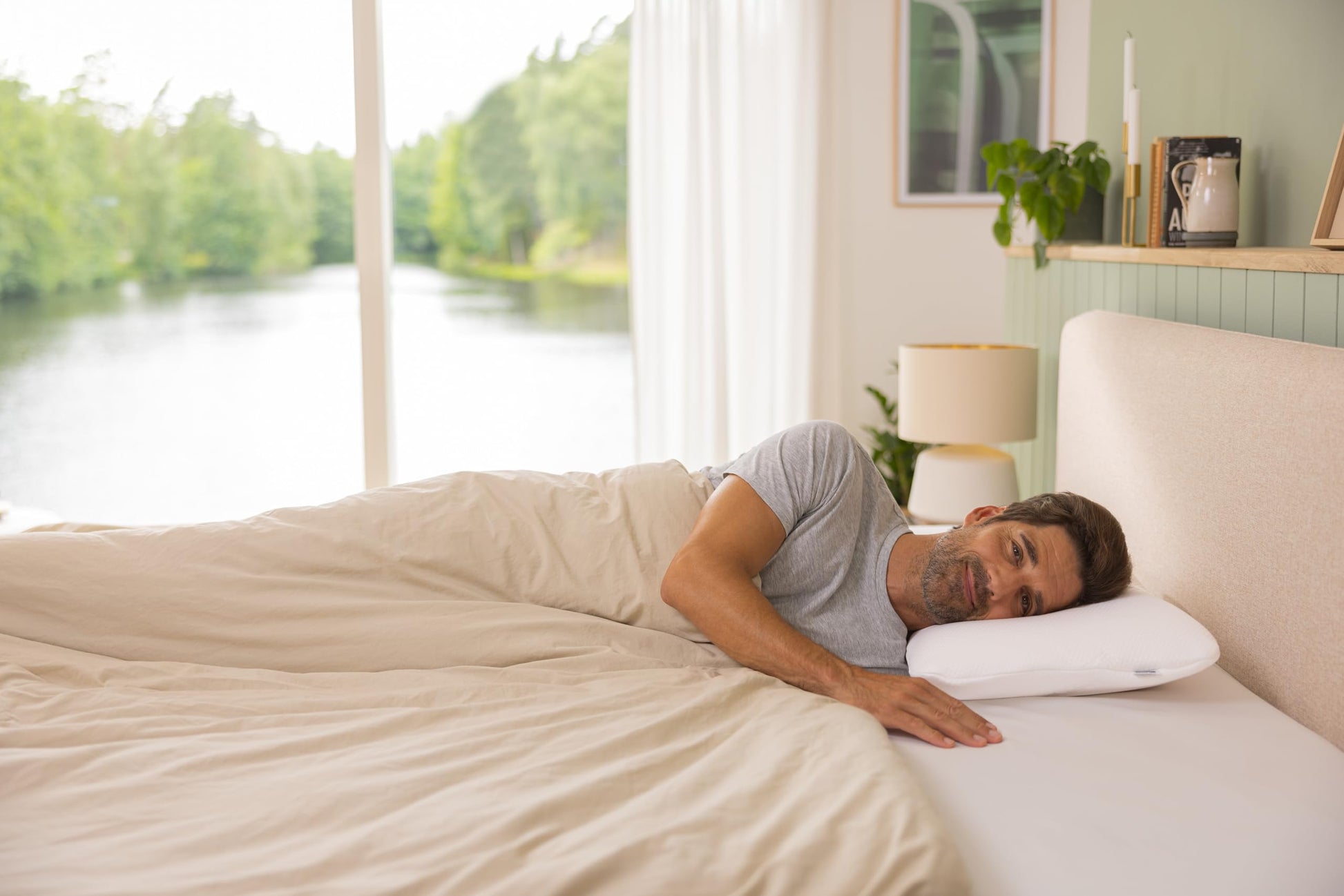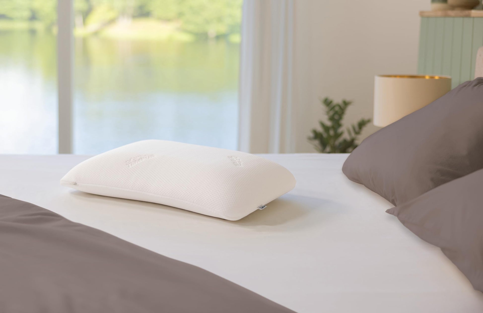 Das TEMPUR Symphony Schlafkissen bietet durch sein cleveres Zwei-Seiten-Design eine massgeschneiderte ergonomische Unterstützung für Personen, die bevorzugt auf dem Rücken oder auf der Seite schlafen.