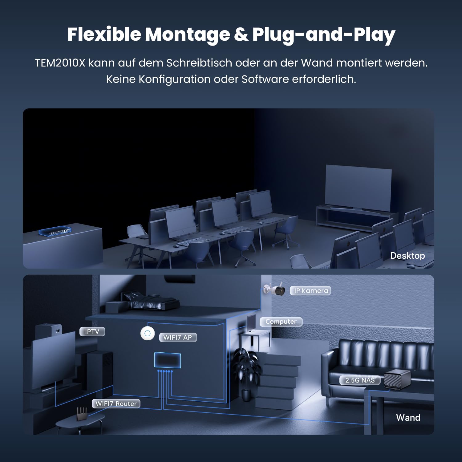 - Multi-Gigabit-Geschwindigkeit: 8x 2.5 Gbit/s RJ45-Ports für schnelle kabelgebundene Verbindungen.
