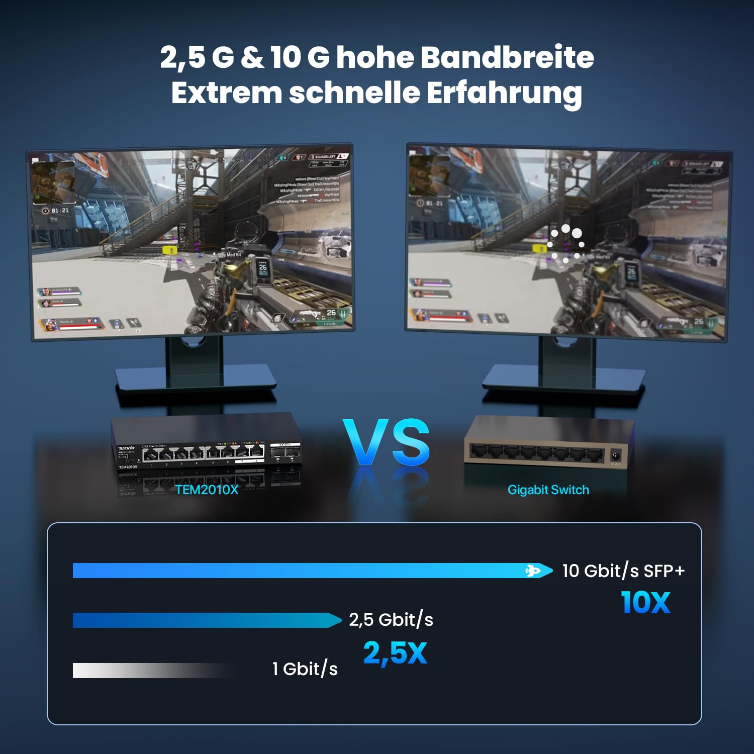 Tenda TEM2010X Unmanaged 2.5G Netzwerk Switch - 8x 2.5G, 2x 10G SFP+