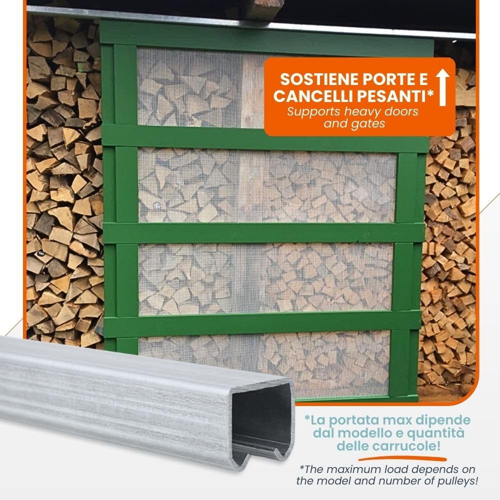 - Komplettes System: Beinhaltet eine 400 cm lange Führungsschiene aus verzinktem Eisen.