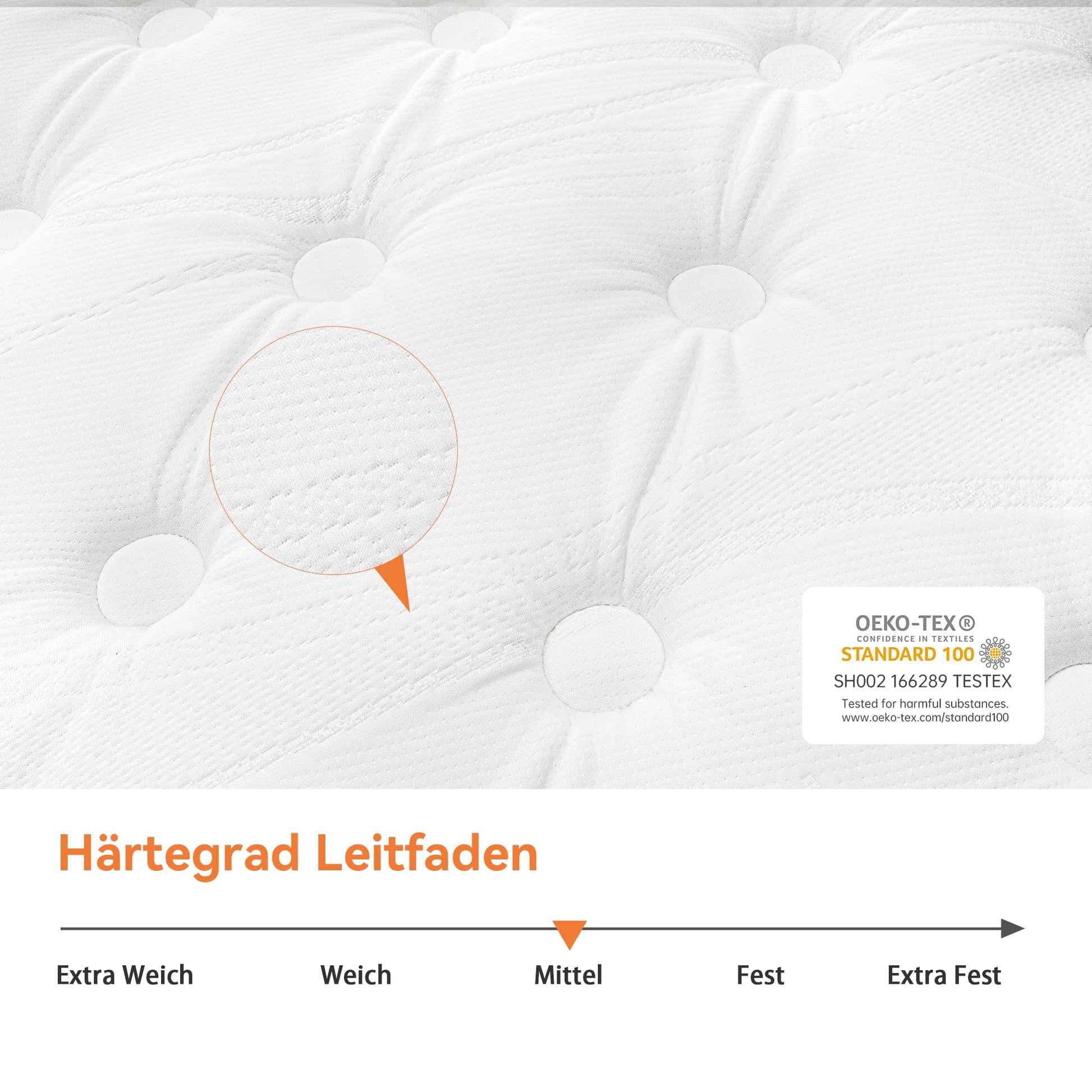 - Komfortable Höhe von 25 cm mit den Härtegraden H3 und H4
