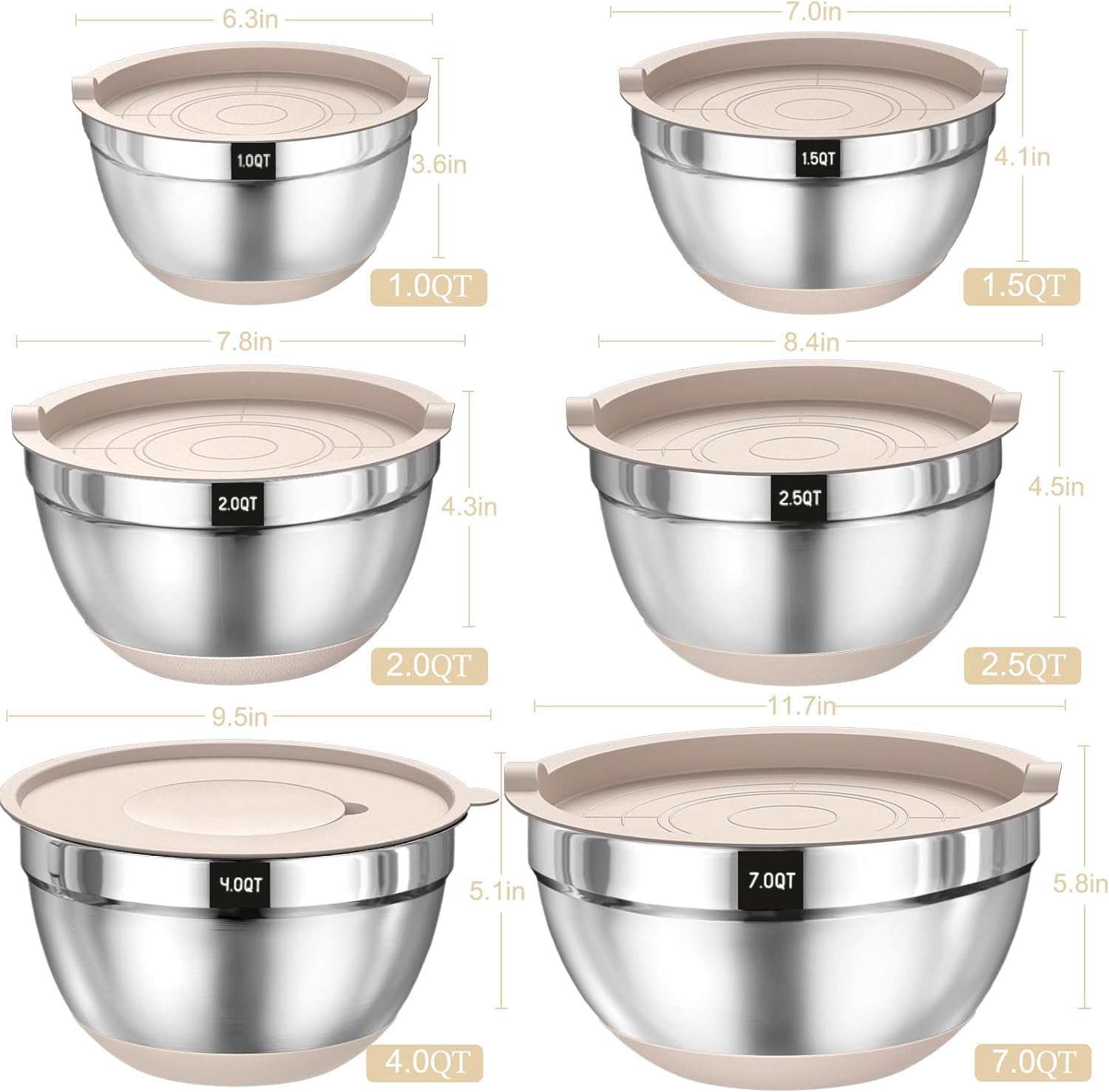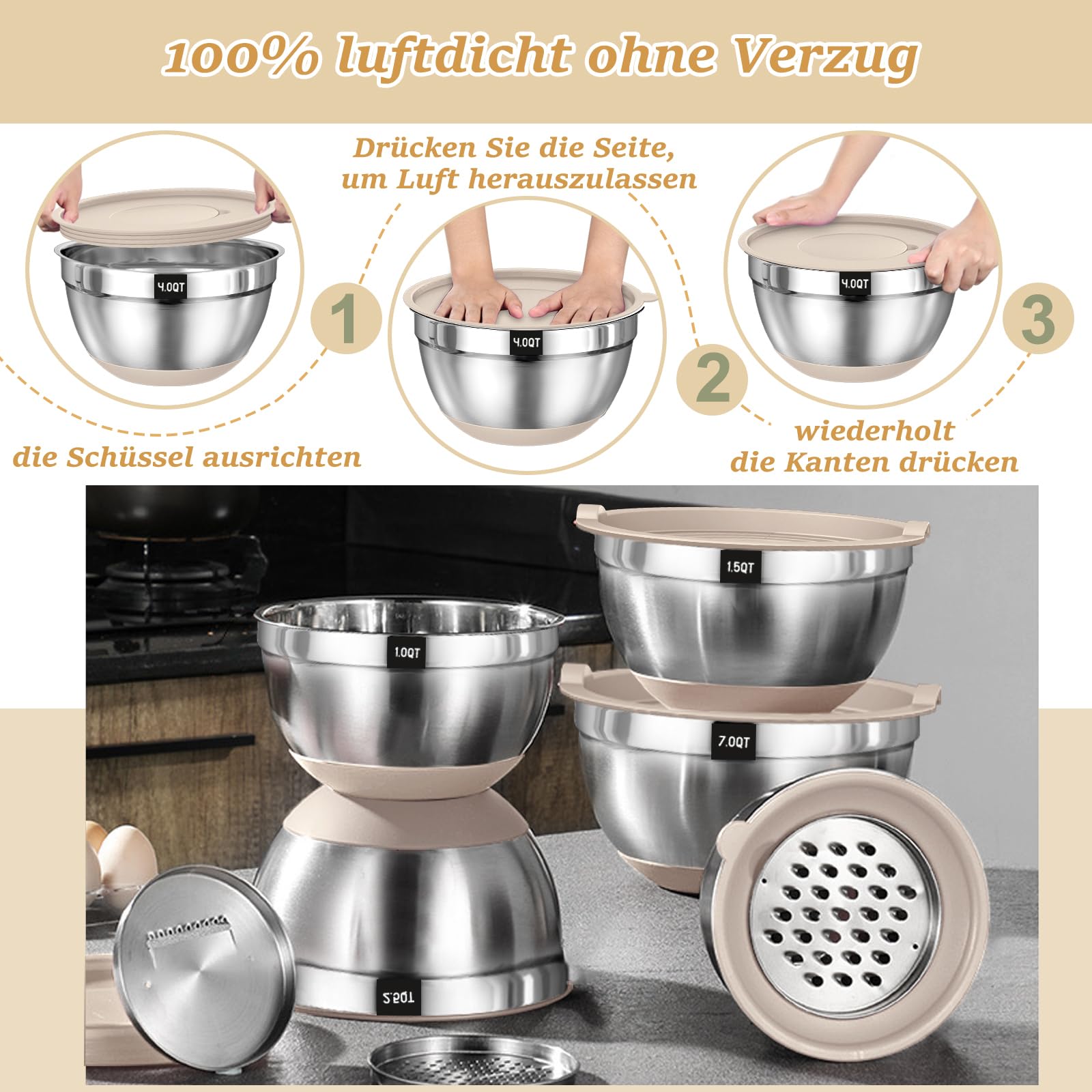 Terlulu Rührschüssel 6er Set Edelstahl mit Deckel - Khaki