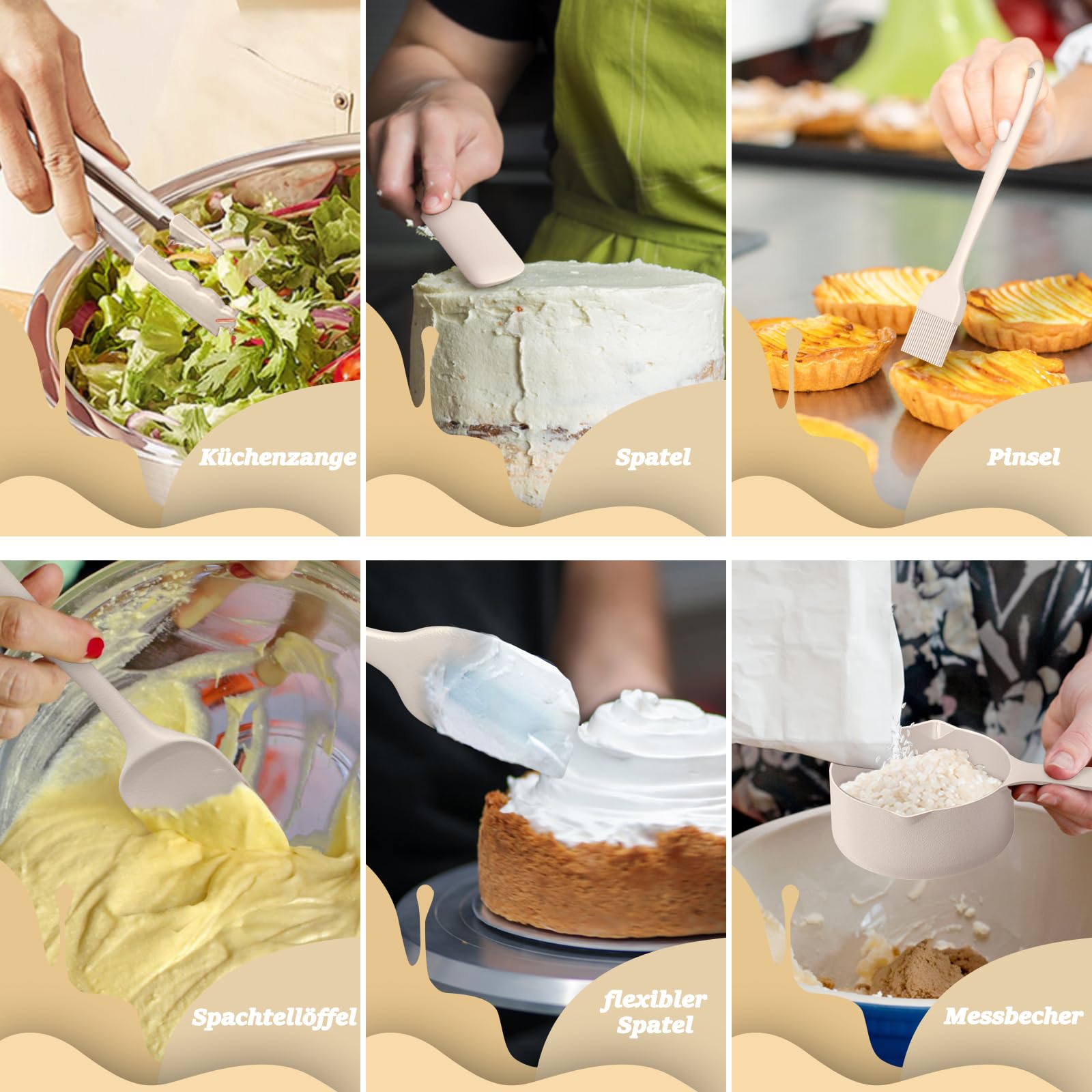 - Zusätzliches Küchenzubehör: Ein praktischer Schwingbesen, ein Spachtel, ein Pinsel und ein Satz Messlöffel sind ebenfalls im Lieferumfang enthalten.