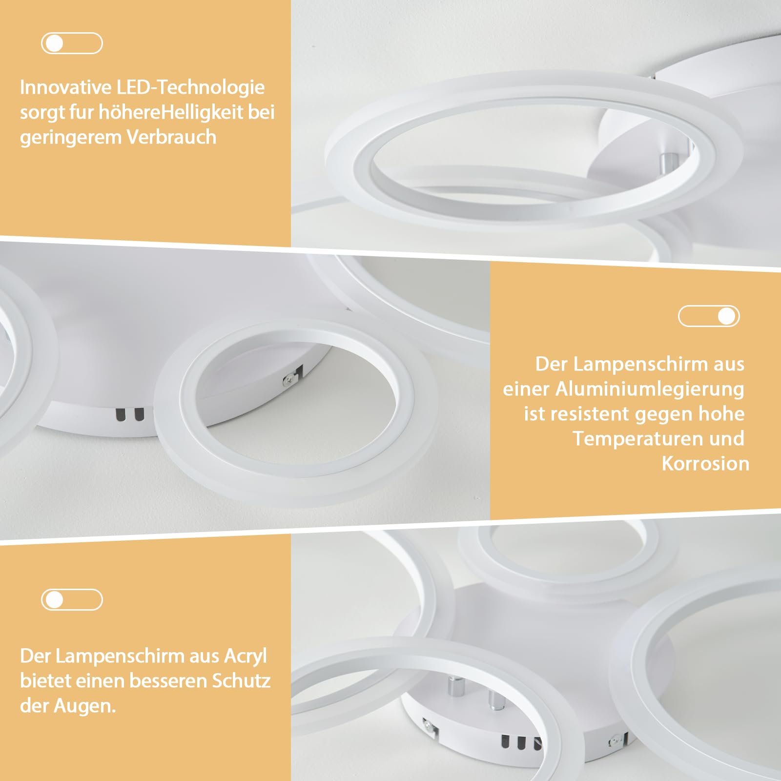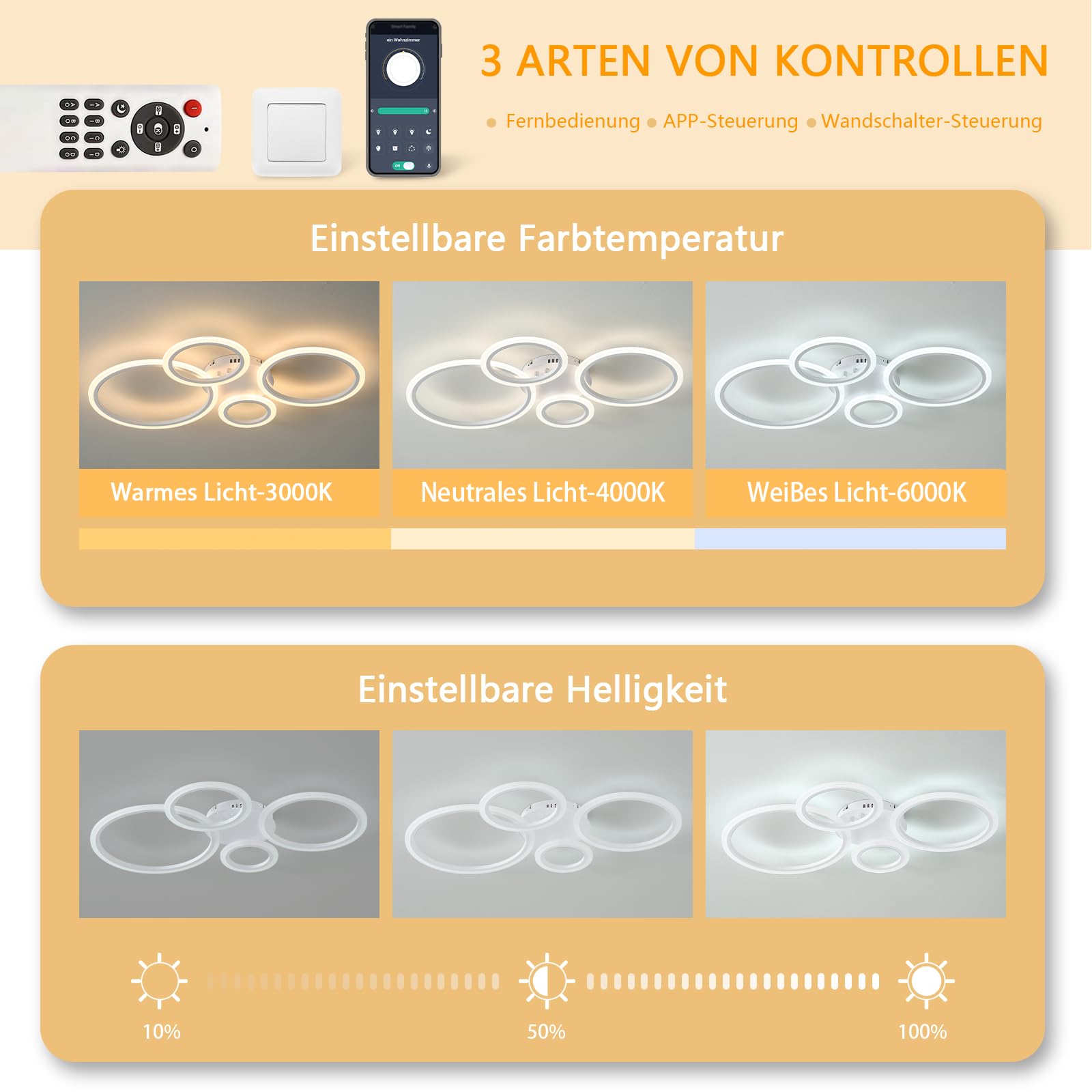 Diese moderne LED-Deckenleuchte kombiniert ein stilvolles Design mit einer vielseitigen und intelligenten Beleuchtungstechnologie, die sich perfekt in Ihr Wohn- oder Schlafzimmer einfügt.