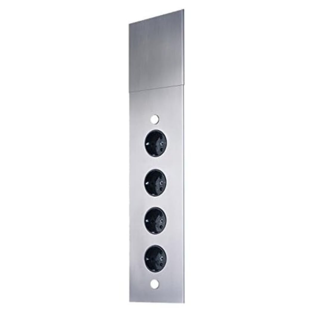 Statten Sie Ihre Küche, Ihr Büro oder Ihre Werkbank mit diesem eleganten Eck-Steckdosenelement aus. Gefertigt aus massivem Edelstahl, bietet es eine ebenso robuste wie stilvolle Lösung für die Stromversorgung auf Ihrer Arbeitsfläche.