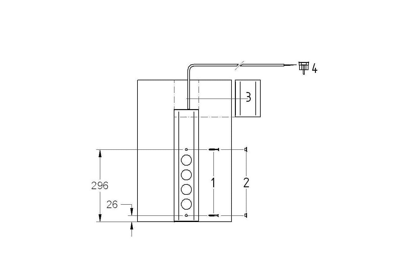 Die Montage erfolgt senkrecht in einer 90-Grad-Ecke. Für einen stabilen Halt wird das Gehäuse üblicherweise an der Wand oder der Küchenrückwand verschraubt. Das flexible, 2 Meter lange Anschlusskabel erleichtert dabei die Installation.