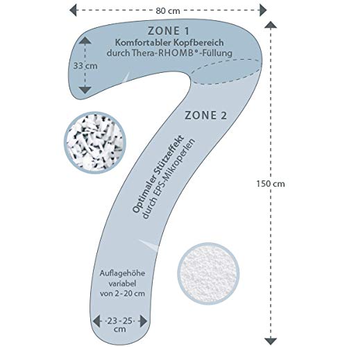 - Materialien: Bezug aus Bambus-Viskose und Bio-Baumwolle; Füllung aus Mikroperlen & Thera-RHOMB®