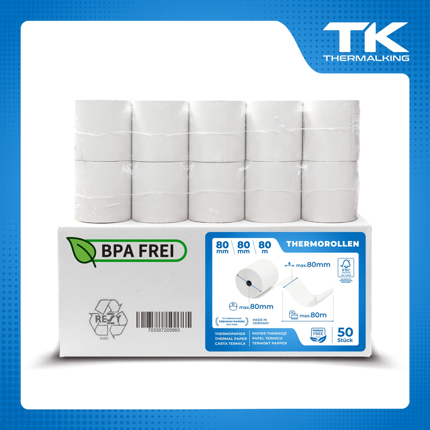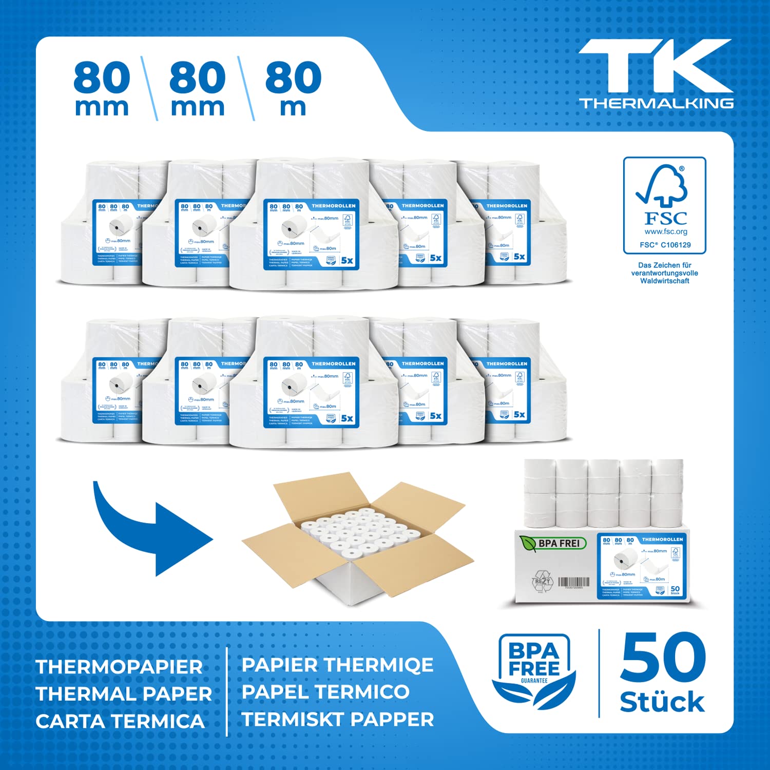 THERMALKING Thermorollen 80x80x12mm – Bonrollen Thermopapier