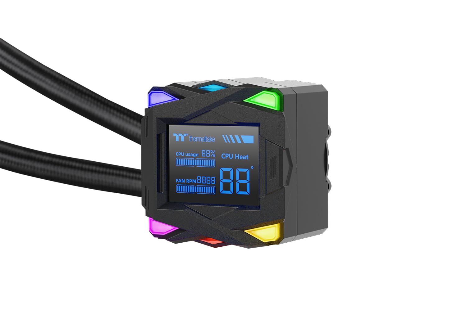 Das herausragende Merkmal ist ein integrierter 2,4-Zoll-LCD-Bildschirm direkt am Wasserblock. Er zeigt Ihnen in Echtzeit wichtige Systeminformationen wie CPU-Temperatur, Auslastung und Lüfterdrehzahlen an, sodass Sie die Leistung Ihres PCs stets im Blick haben, ohne zusätzliche Software-Overlays zu benötigen.