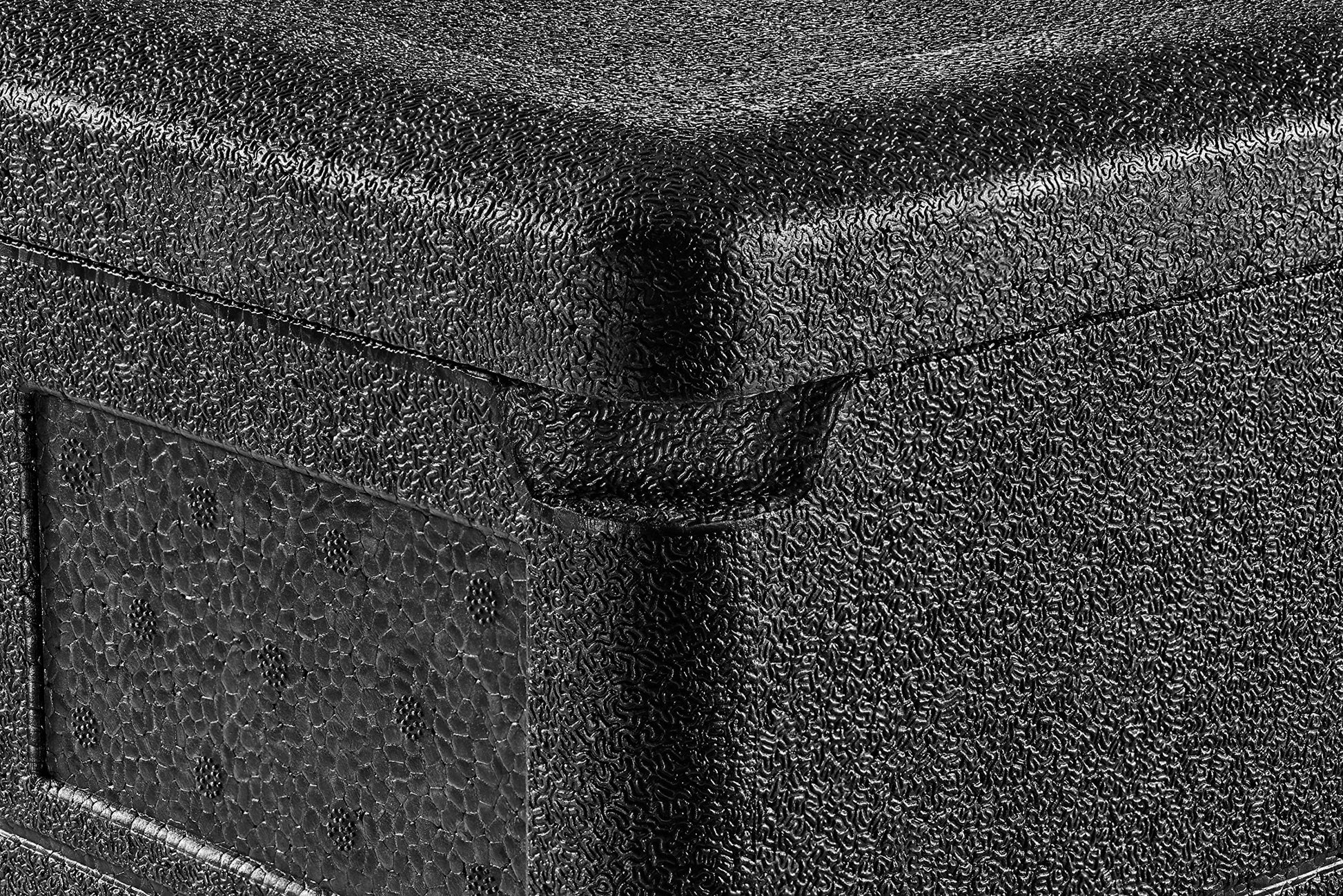 Die Gastrostar Thermobox wurde für den anspruchsvollen Alltag in der Gastronomie entwickelt. Ihre robuste Aussenfläche mit Strukturätzung sorgt nicht nur für eine ansprechende Optik, sondern erhöht auch die Stabilität der Box. Ein entscheidender Vorteil ist die absolut dichte Innenoberfläche. Dadurch werden unangenehme Gerüche und hartnäckige Verschmutzungen durch ausgelaufene Saucen oder Flüssigkeiten effektiv vermieden, was die Reinigung erheblich vereinfacht – die Box ist sogar spülmaschinengeeignet.