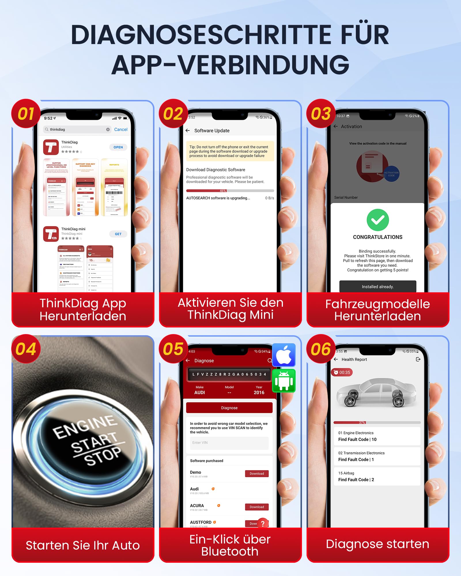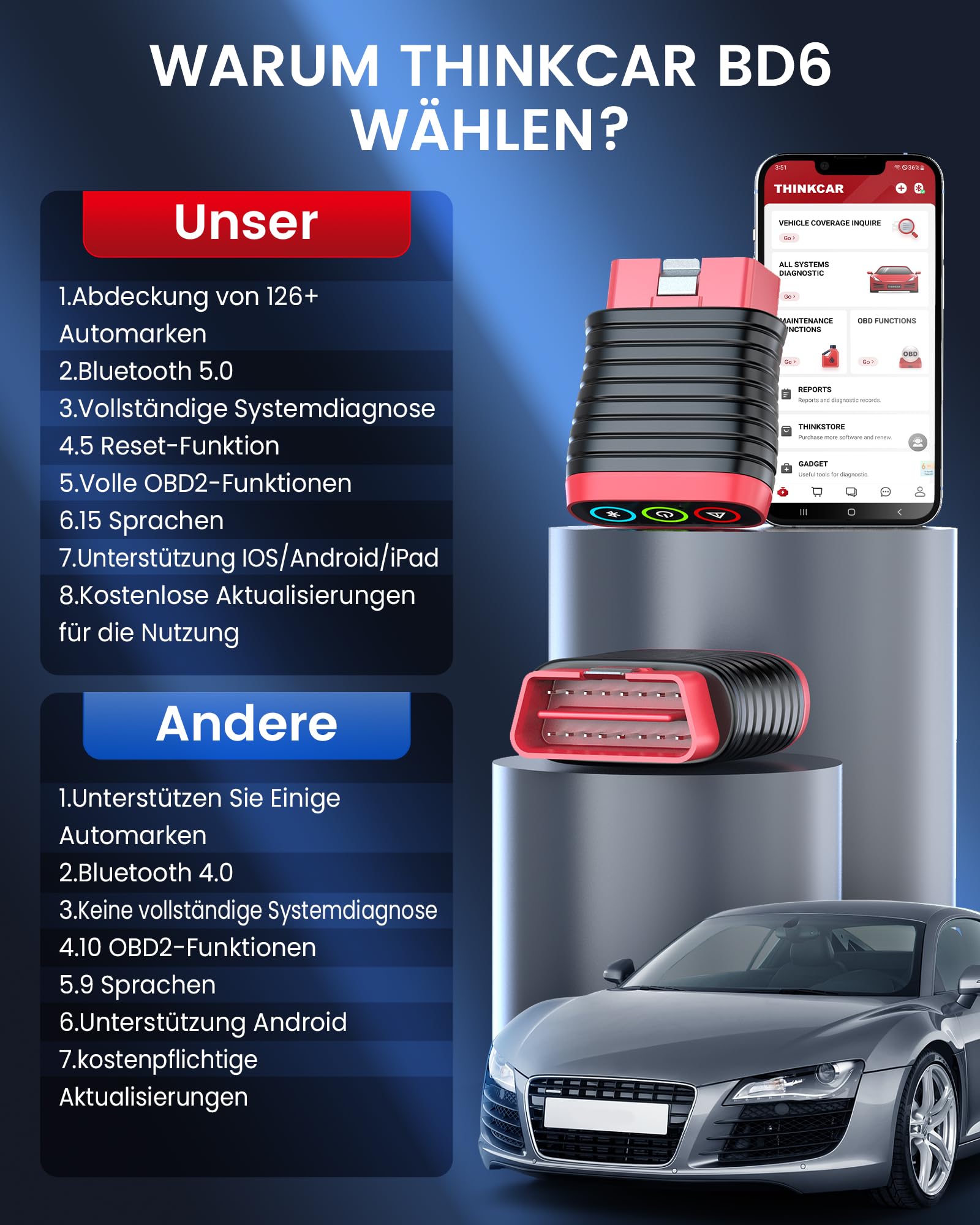 Mit dem thinkcar BD6 haben Sie ein leistungsstarkes und benutzerfreundliches Diagnosewerkzeug immer griffbereit.