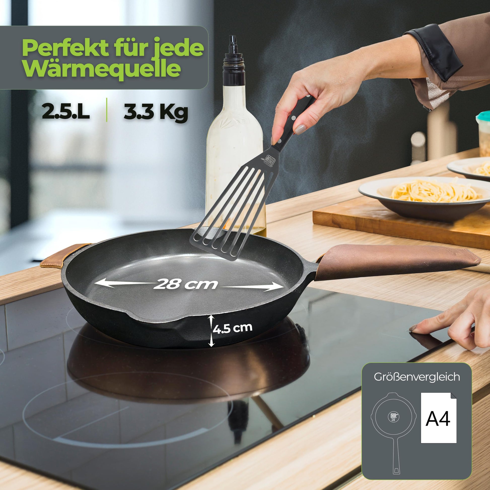 THOR Gusseisenpfanne Induktion 28cm - Geschliffene Oberfläche