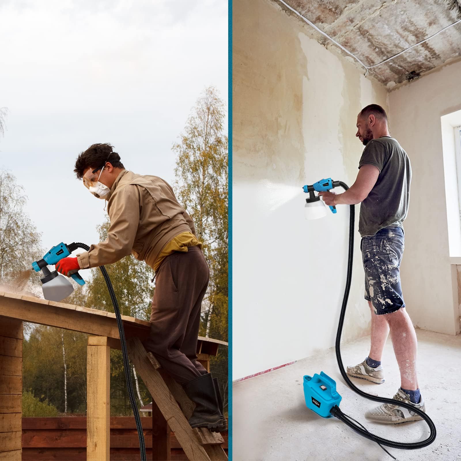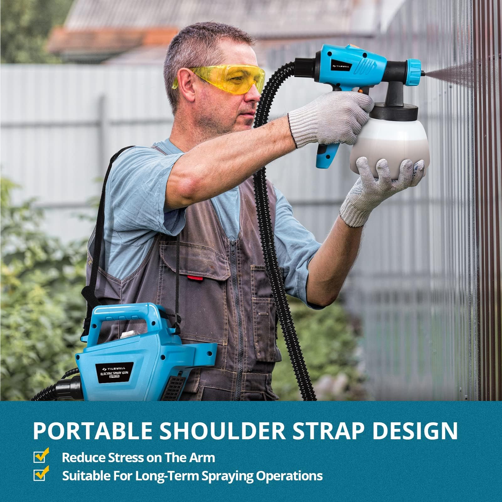 Ein besonderer Vorteil ist das ergonomische Design mit getrenntem Motor. Die Sprühpistole selbst ist dadurch besonders leicht, was ein ermüdungsfreies Arbeiten ermöglicht und die Handhabung spürbar erleichtert. In Kombination mit dem langen Schlauch und Kabel können Sie sich frei bewegen und auch grössere Bereiche bequem bearbeiten.