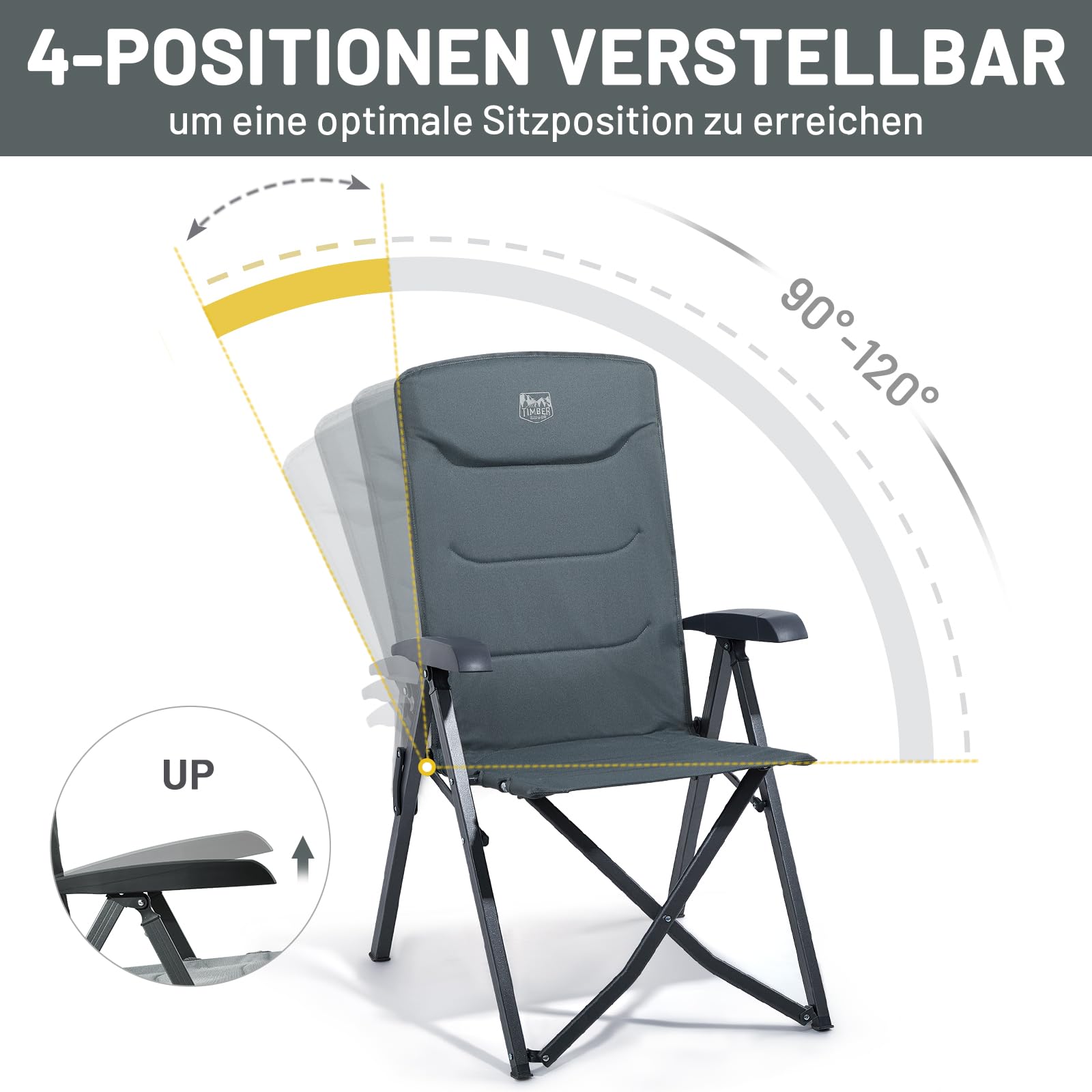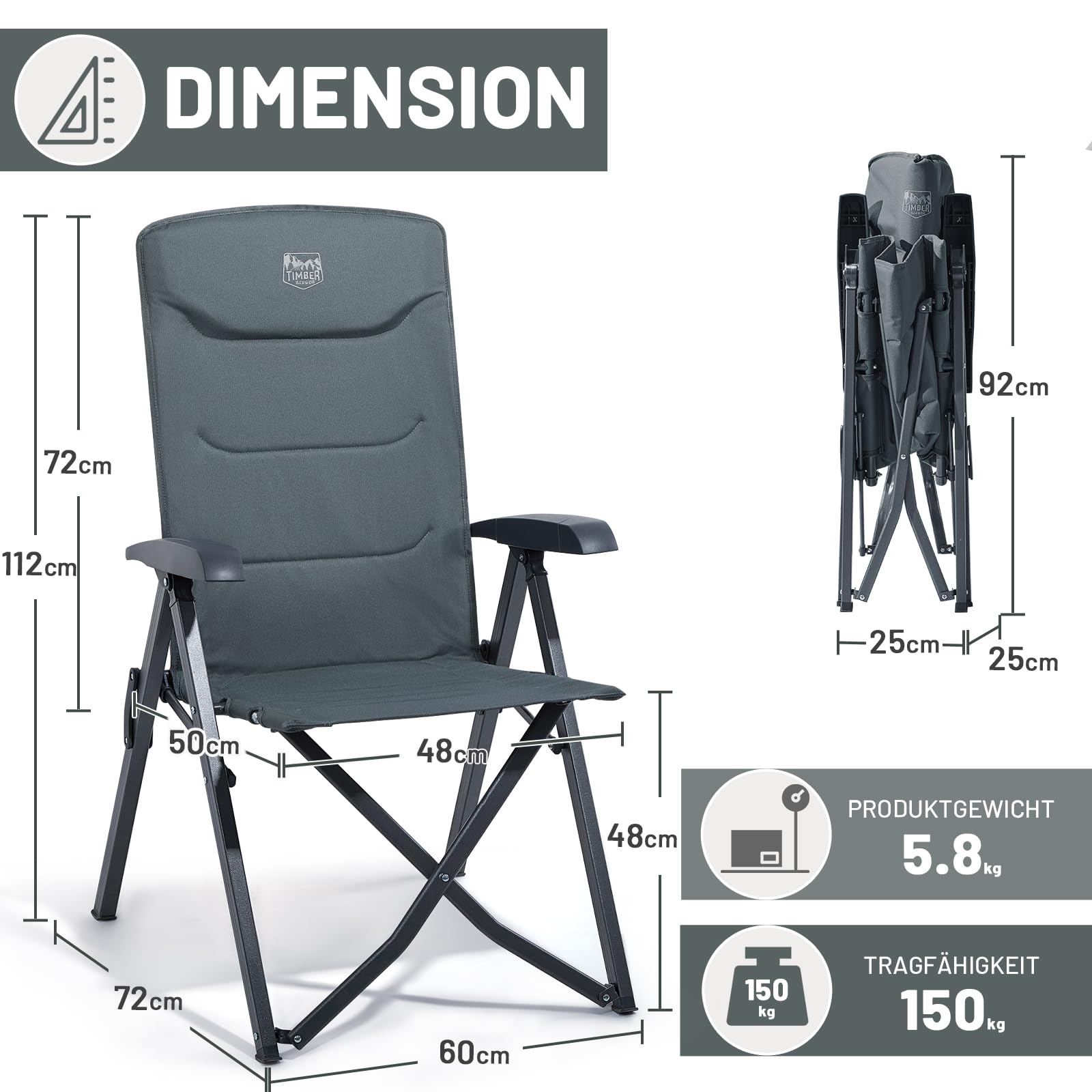 Der TIMBER RIDGE Campingstuhl ist Ihr idealer Begleiter für alle Outdoor-Aktivitäten. Er kombiniert hohen Sitzkomfort mit einem robusten und dennoch kompakt faltbaren Design, das sich mühelos transportieren und verstauen lässt.