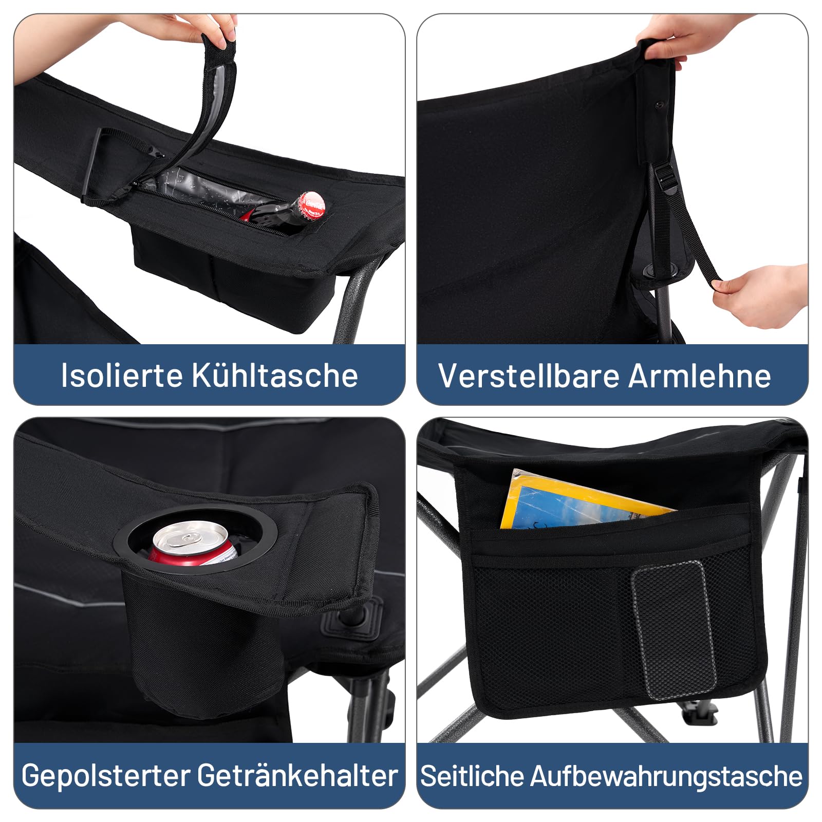 - Integrierte Kühltasche: Eine isolierte Tasche in der Armlehne hält Ihre Getränke und Snacks angenehm kühl und griffbereit.