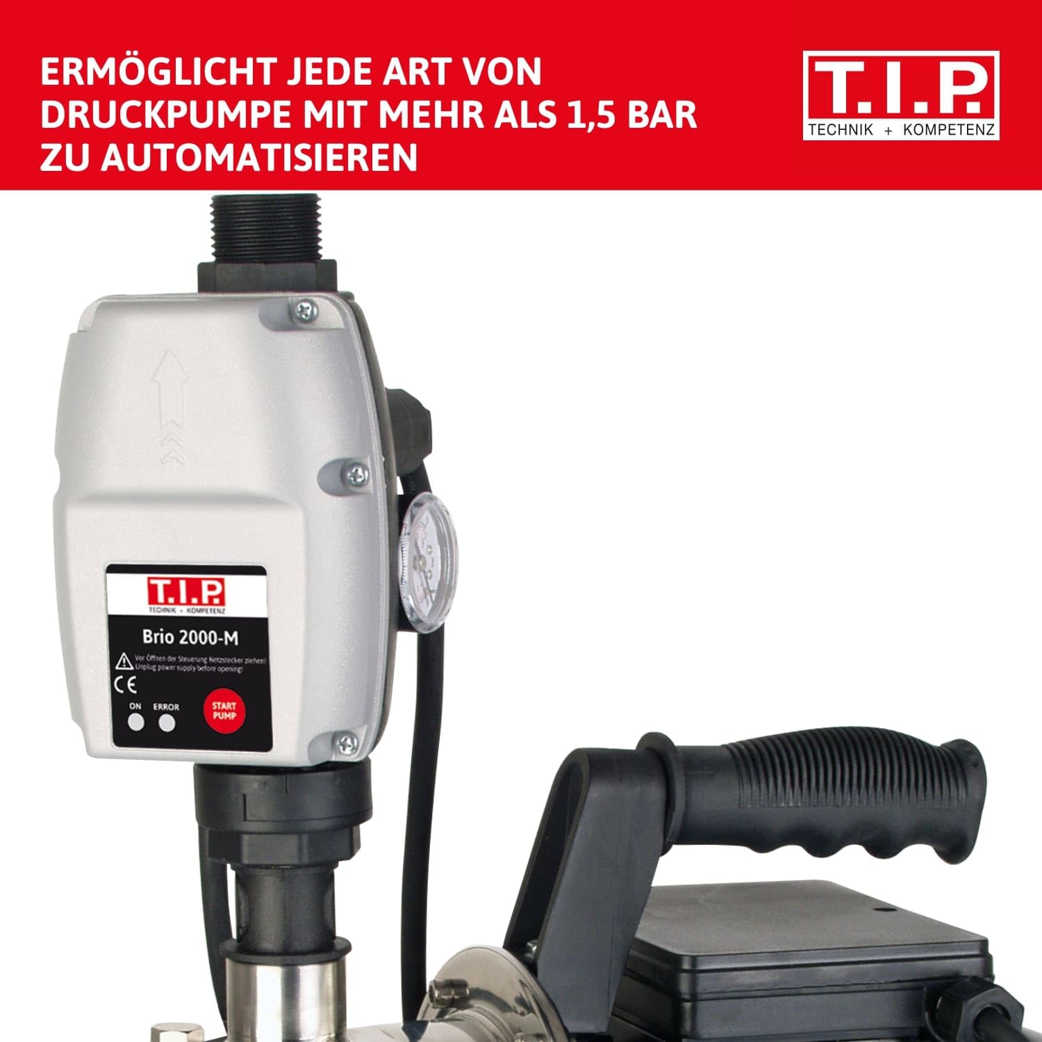 Automatisieren Sie Ihre Druckpumpe mühelos mit dieser elektronischen Pumpensteuerung. Das System bietet eine unkomplizierte Plug-and-Play-Lösung, um Tauchdruck-, Tiefbrunnen-, Zisternen- oder Gartenpumpen intelligent zu steuern.