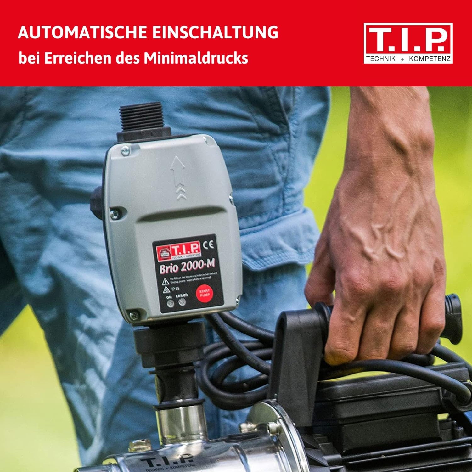 - Automatischer Betrieb: Schaltet die Pumpe bei Erreichen des Minimaldrucks ein und nach Gebrauch leistungsabhängig wieder aus.