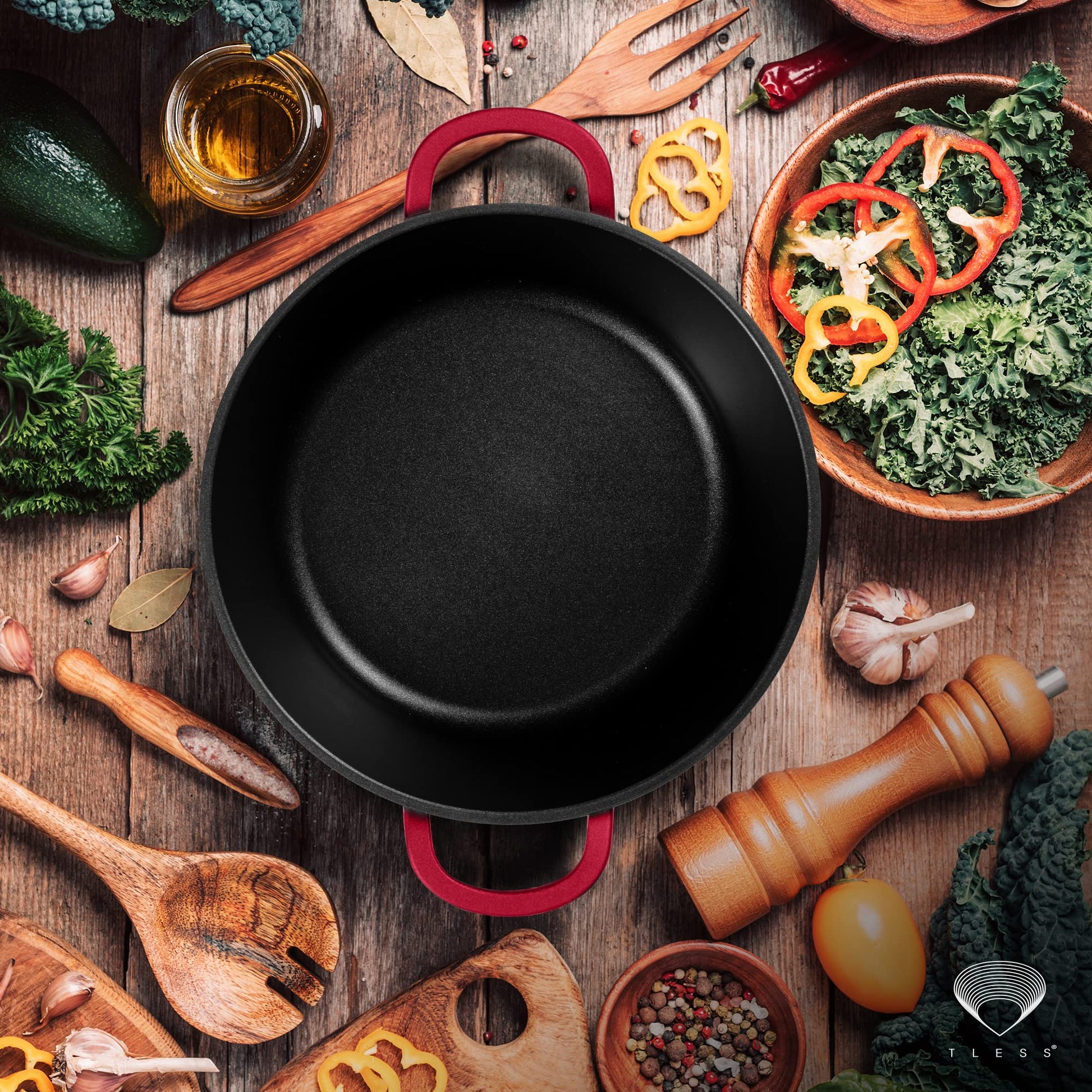 TLESS® 2in1 Aluguss Bräter mit Deckel – Ø 28 cm, 6L, Rot