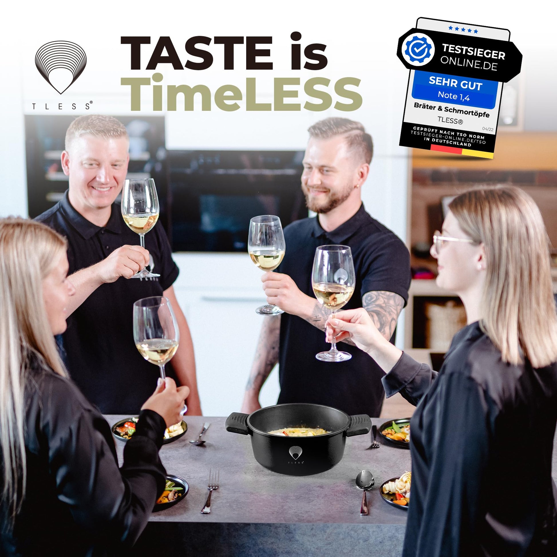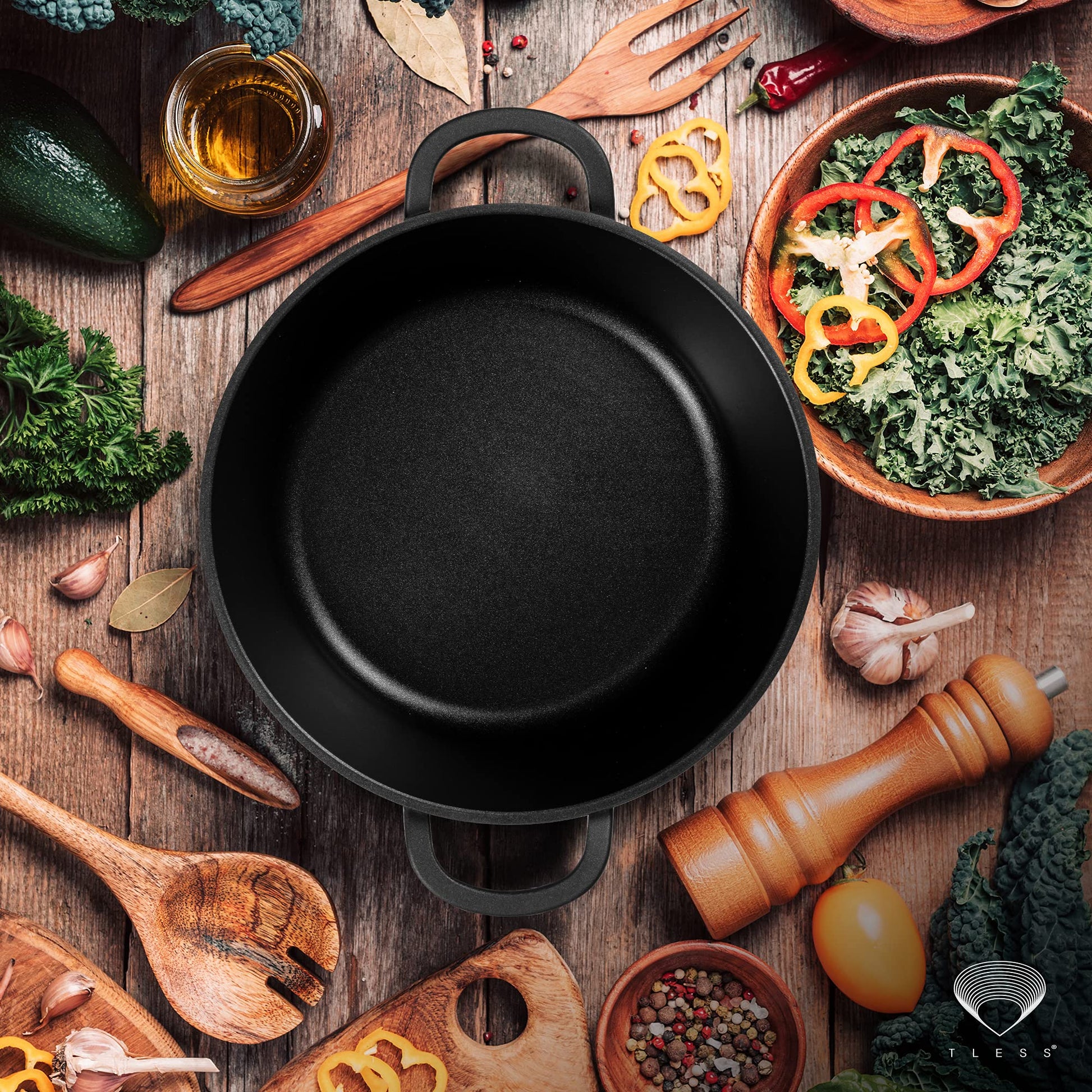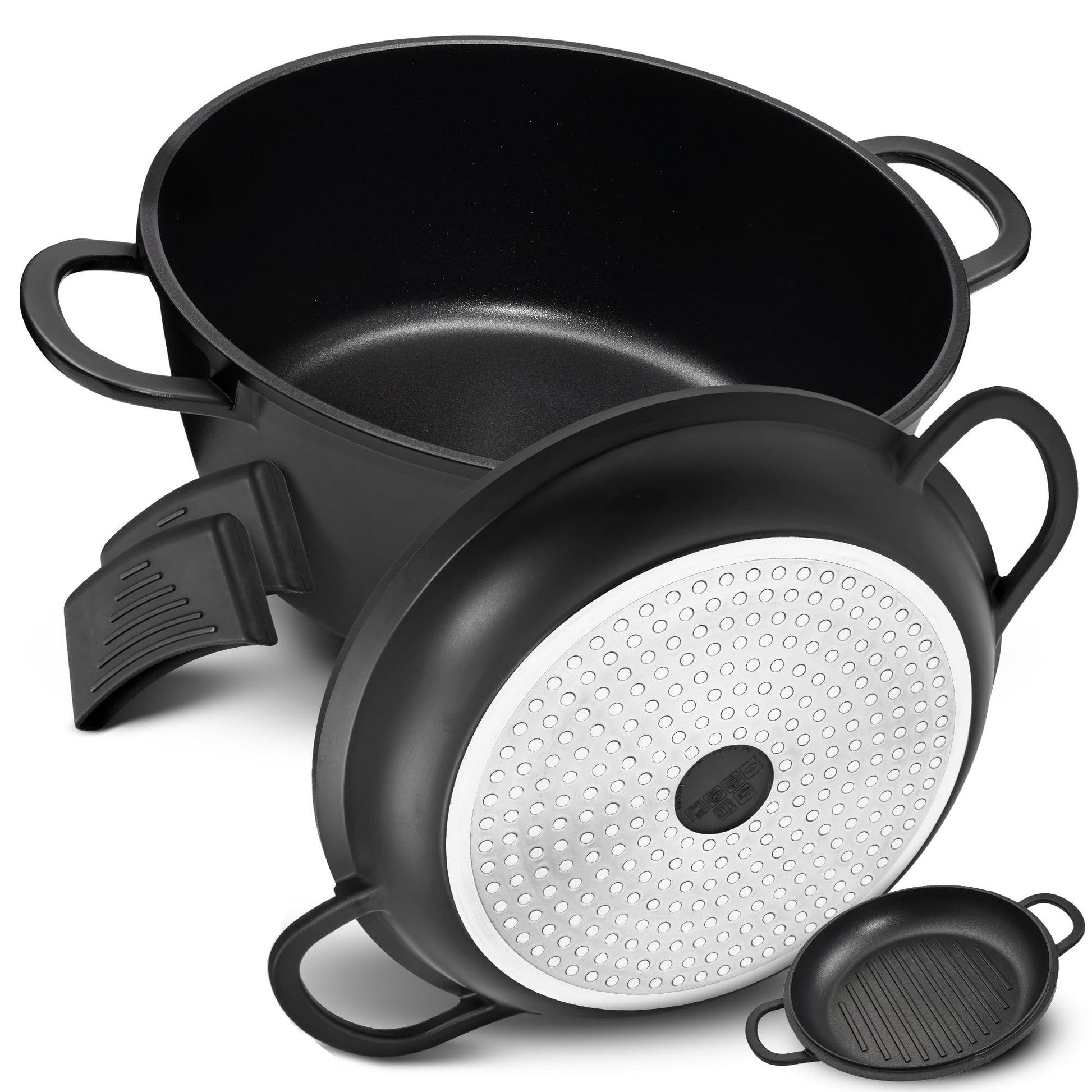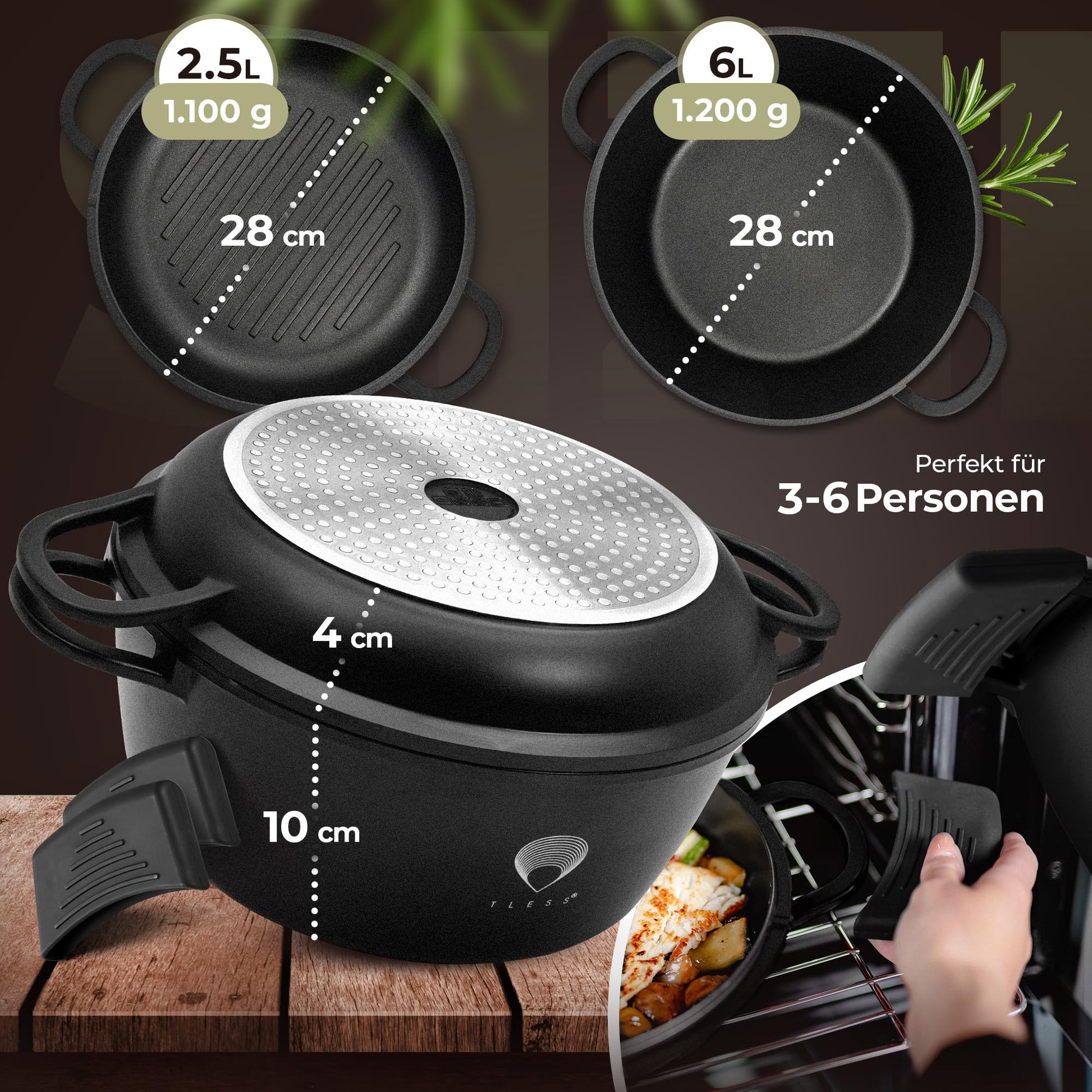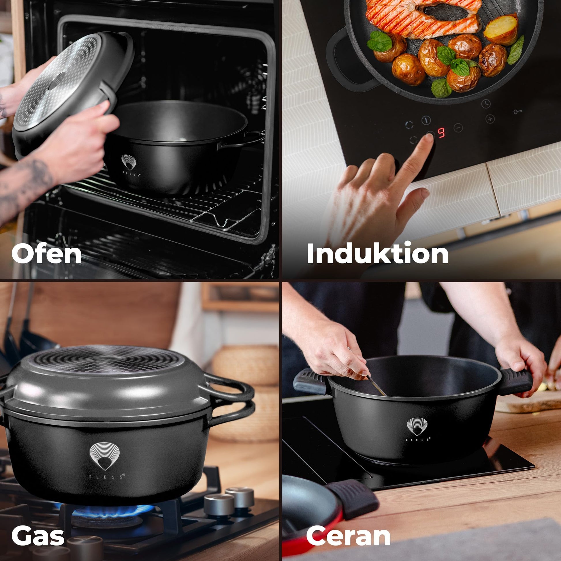 TLESS 2in1 Aluguss Bräter mit Deckel – Ø 28 cm 6L Schwarz