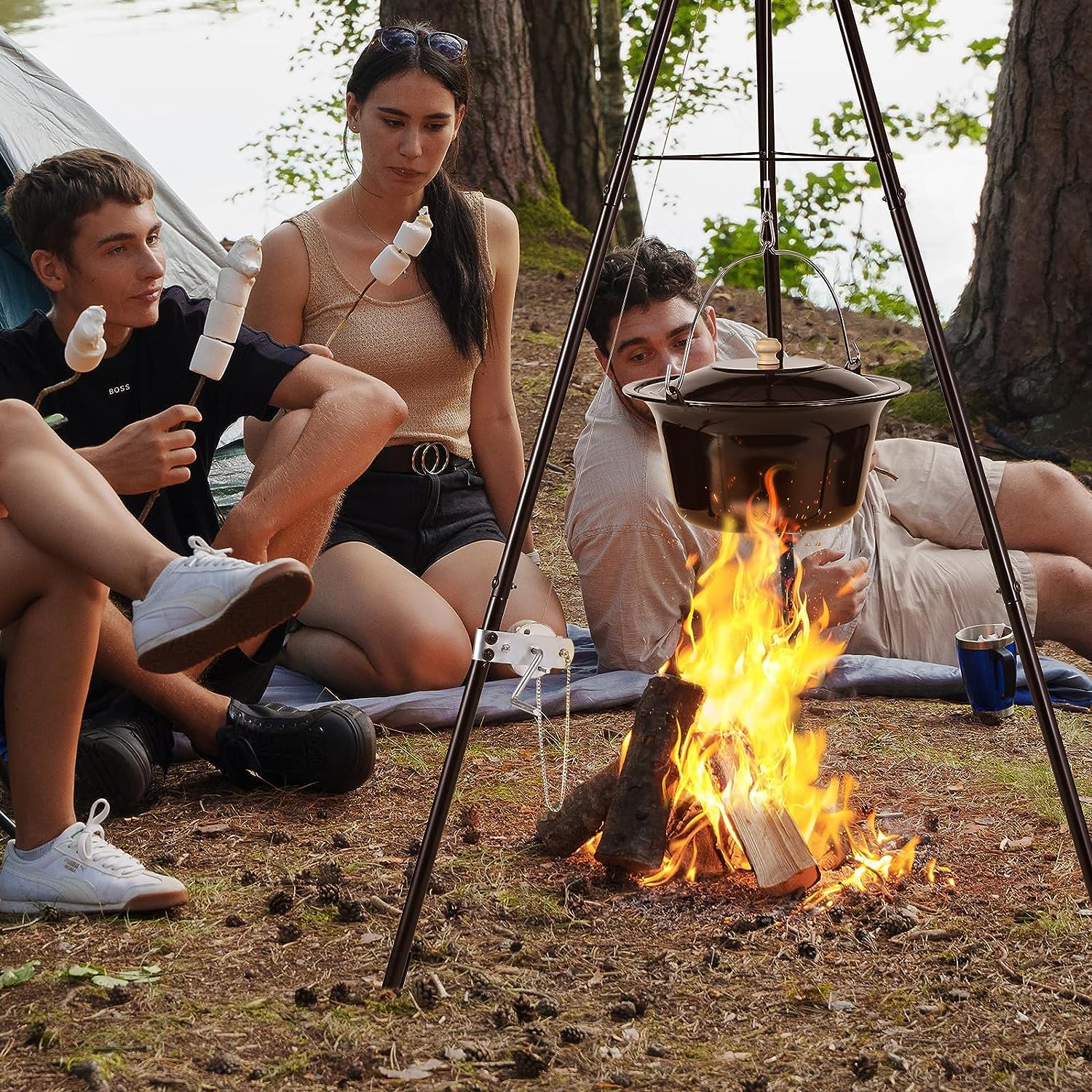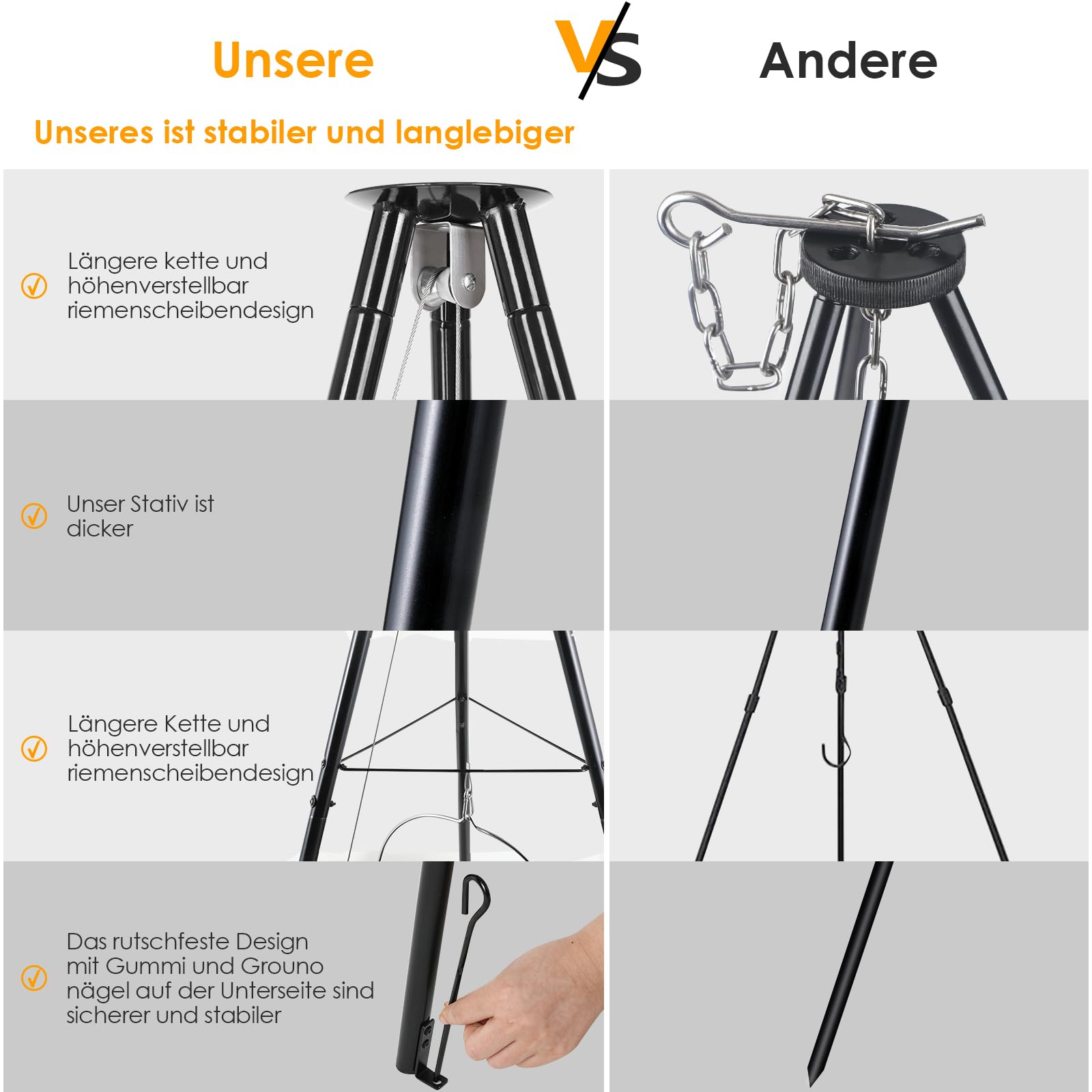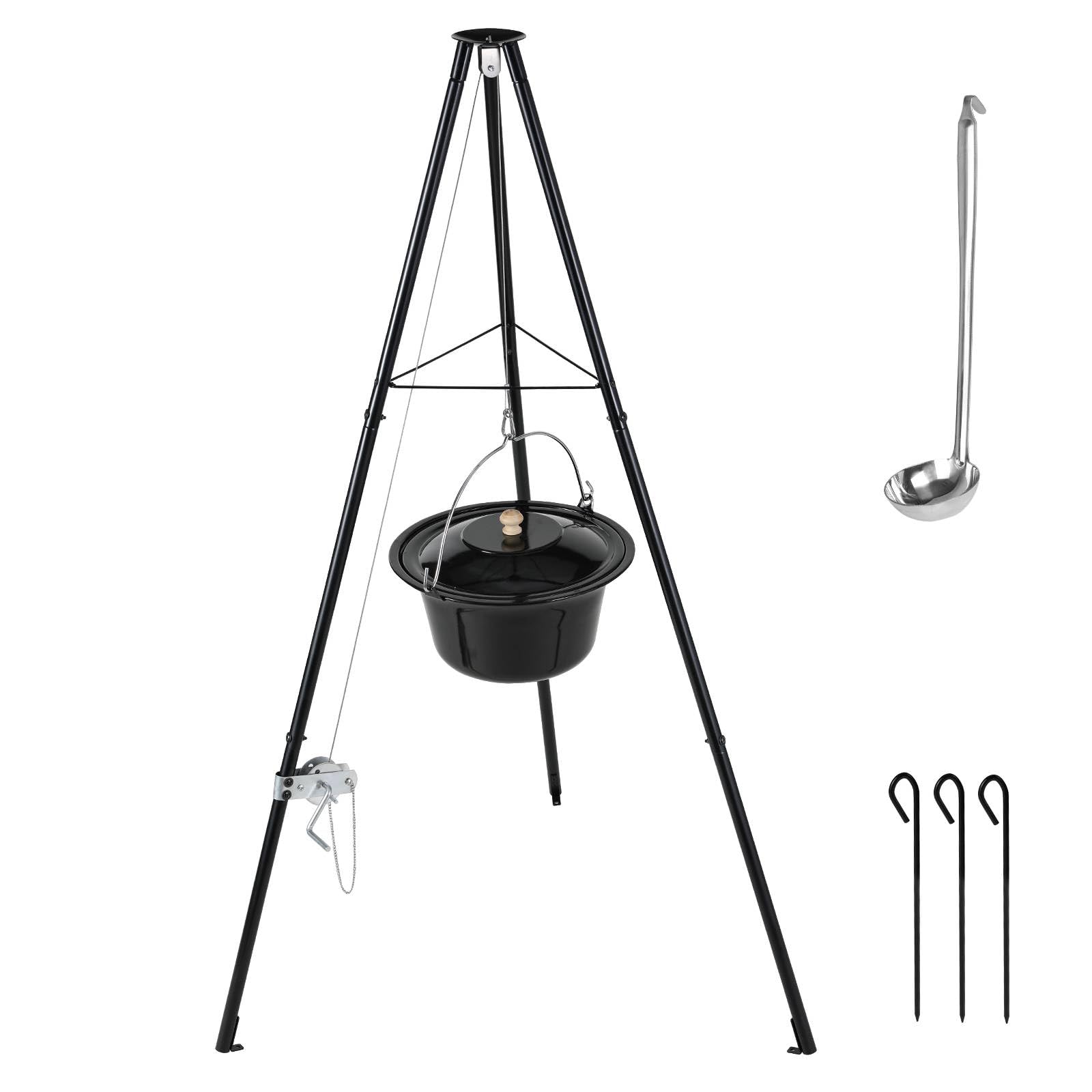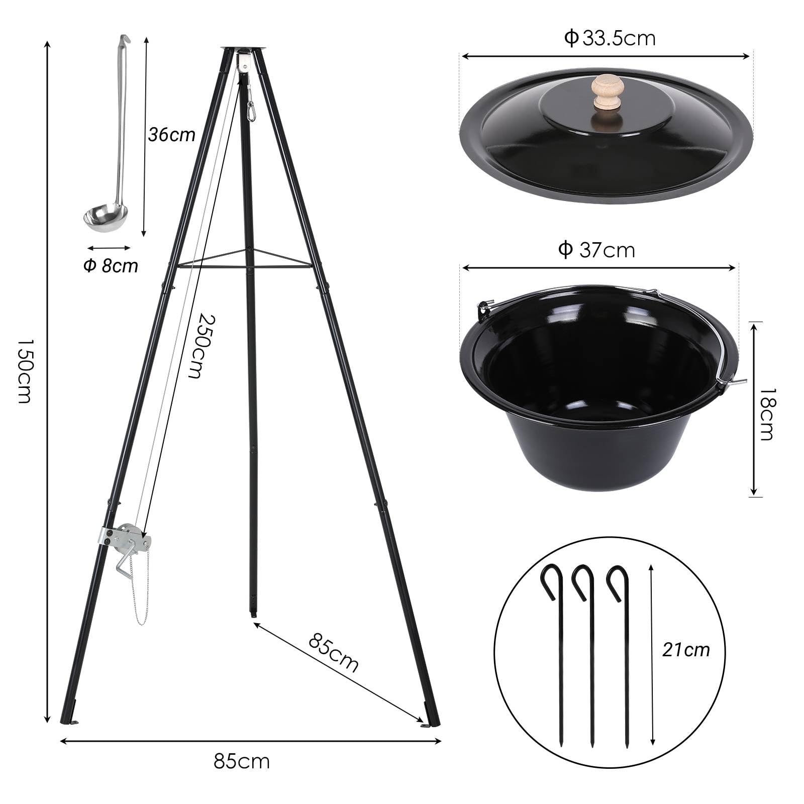 - Hochwertige Materialien: Der Kessel ist aus einer langlebigen und pflegeleichten Emaille-Beschichtung gefertigt, die rostfrei und einfach zu reinigen ist. Das Dreibein-Gestell besteht aus stabilem, verdicktem Rohr und gewährleistet eine hohe Tragkraft.