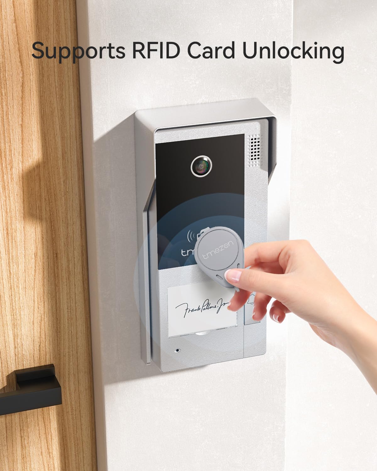 - Flexible Entsperrung: Öffnen Sie die Tür wahlweise über den Innenmonitor, die Smartphone-App oder eine der 8 mitgelieferten RFID-Karten.