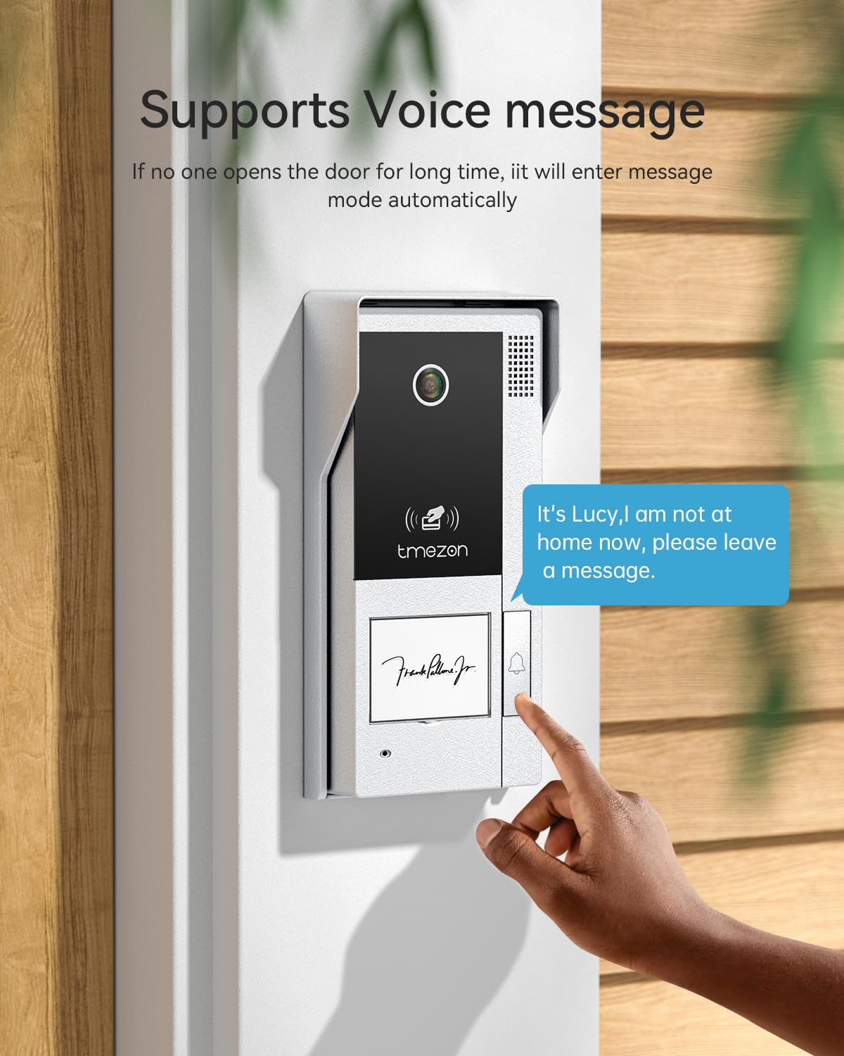 Diese moderne Video-Türsprechanlage von TMEZON ist die ideale Sicherheits- und Komfortlösung für jedes Zweifamilienhaus. Sie kombiniert eine hochauflösende Kamera mit smarter App-Steuerung und flexiblen Zutrittsoptionen in einem einzigen System.