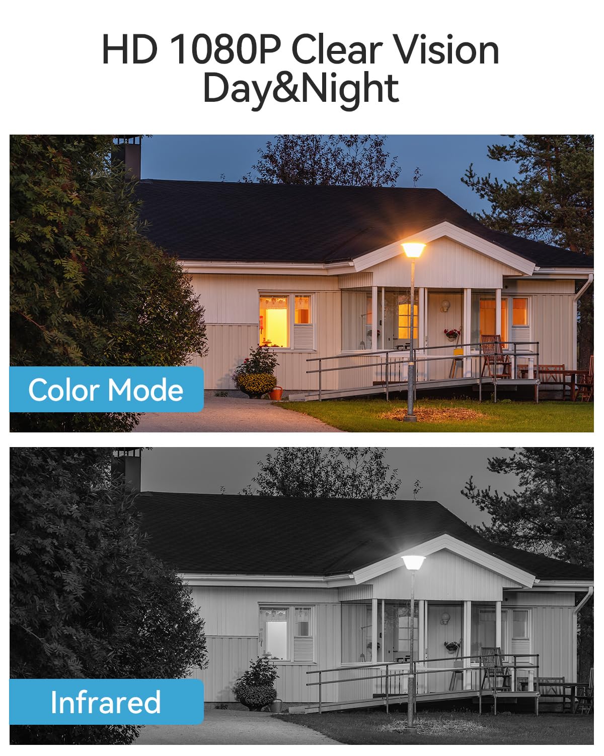 - Full HD Videoqualität: Eine 1080P-Kamera mit Infrarot-Nachtsicht sorgt rund um die Uhr für gestochen scharfe Bilder.