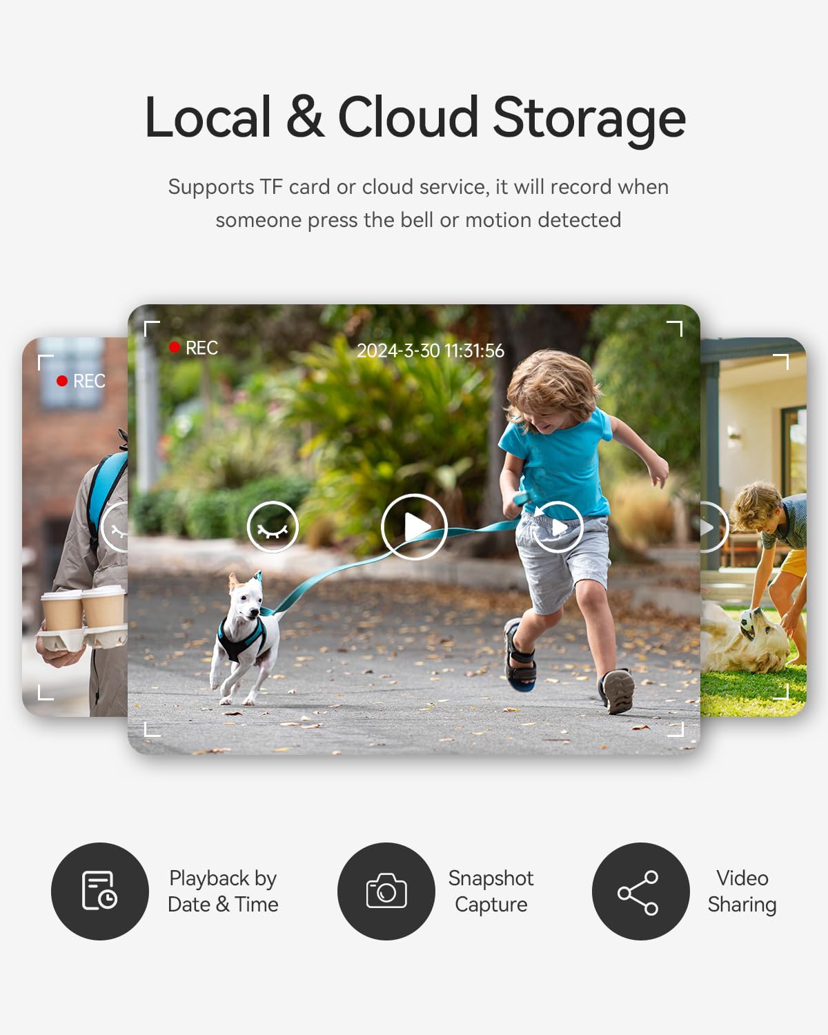 - Bewegungserkennung & Aufnahme: Automatische Aufzeichnung von Videos bei Klingelbetätigung oder erkannter Bewegung auf einer TF-Karte (bis 128 GB, nicht enthalten).