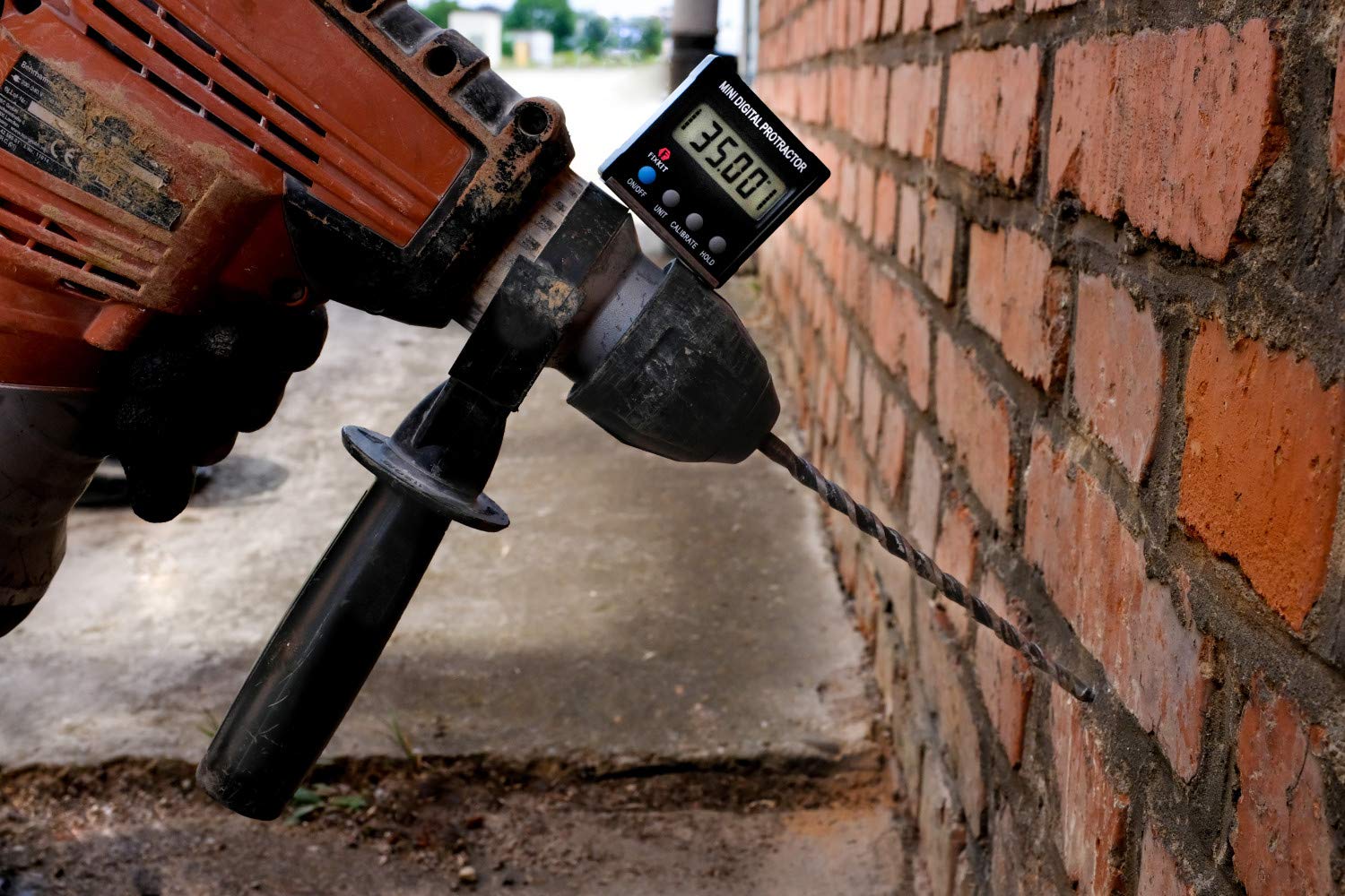 Bohren Sie 12-mm-Löcher in einem Abstand von maximal 20 cm leicht schräg nach unten in die unterste Mauerwerksfuge. Die Bohrtiefe sollte bis ca. 5 cm vor Wandende reichen. Anschliessend müssen die Bohrlöcher sorgfältig von Staub befreit werden.