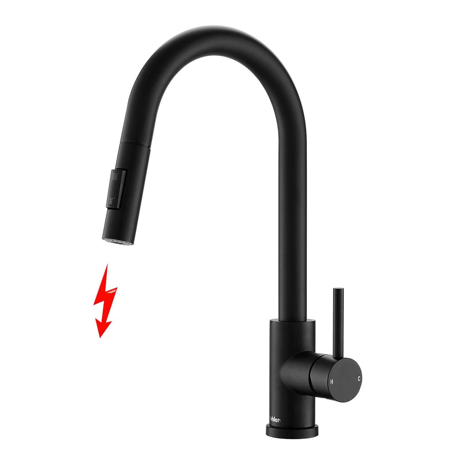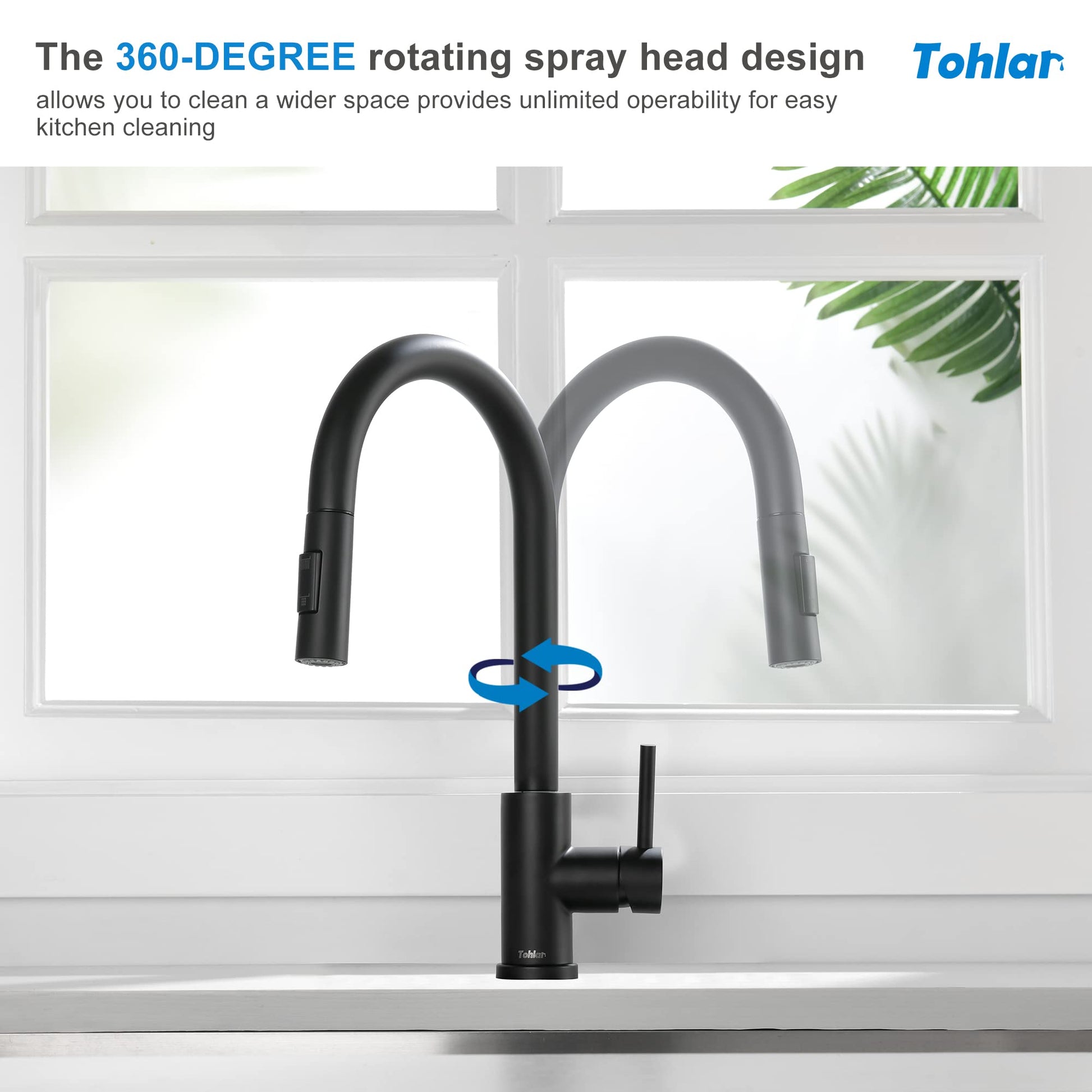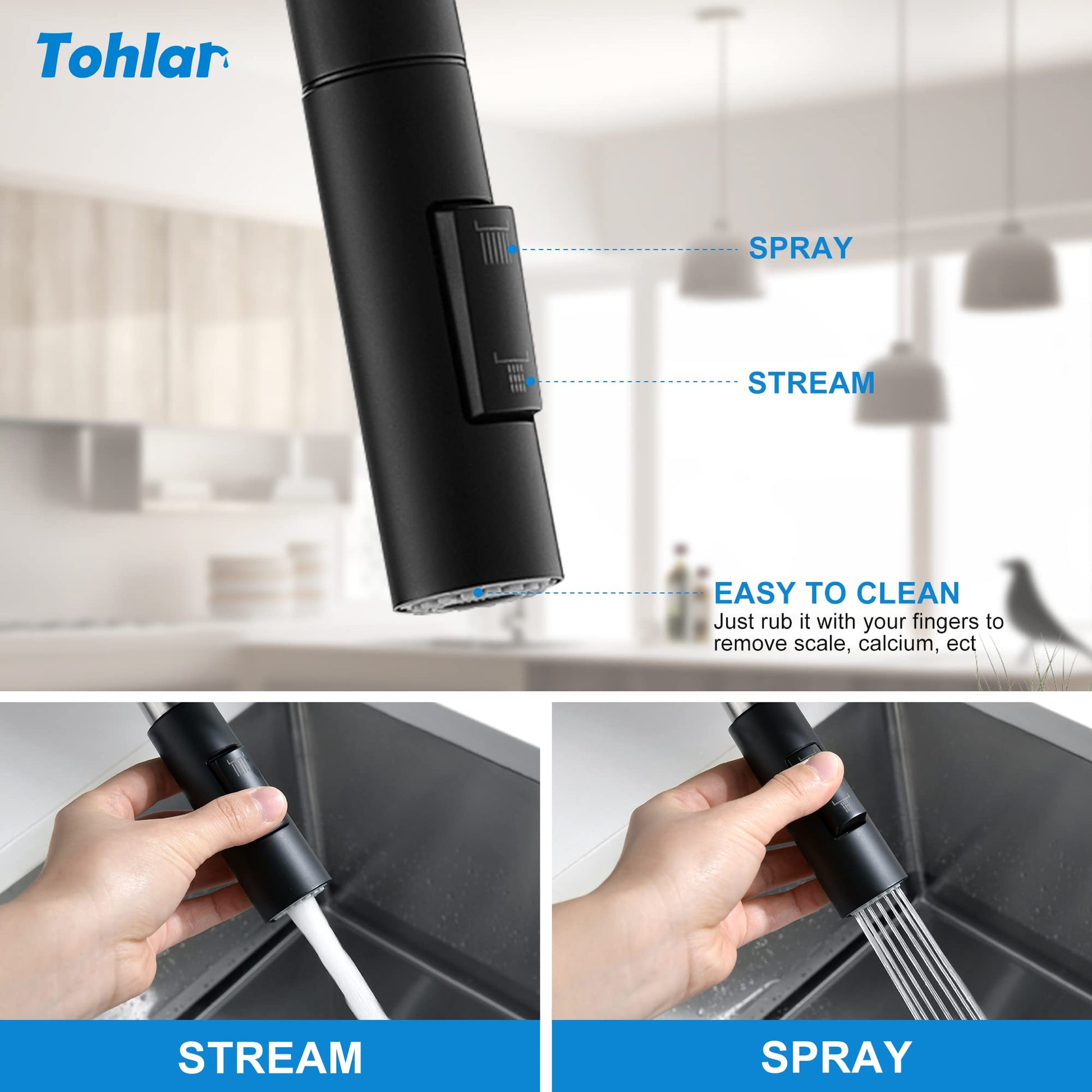 Tohlar Niederdruck Küchenarmatur – Ausziehbrause, Schwarz