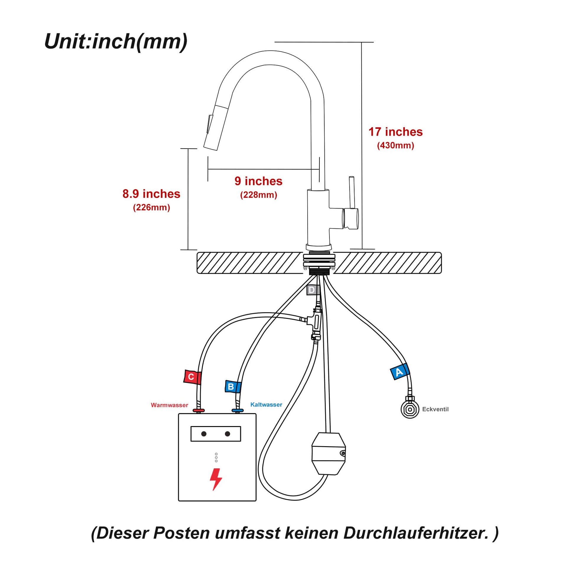 Wir bieten Ihnen ein 90-tägiges Rückgaberecht. Sollten Sie Fragen haben, steht Ihnen unser Kundendienst gerne zur Seite. Bitte stellen Sie sicher, dass Ihr Boiler für den Betrieb mit einer Niederdruck-Armatur geeignet ist.