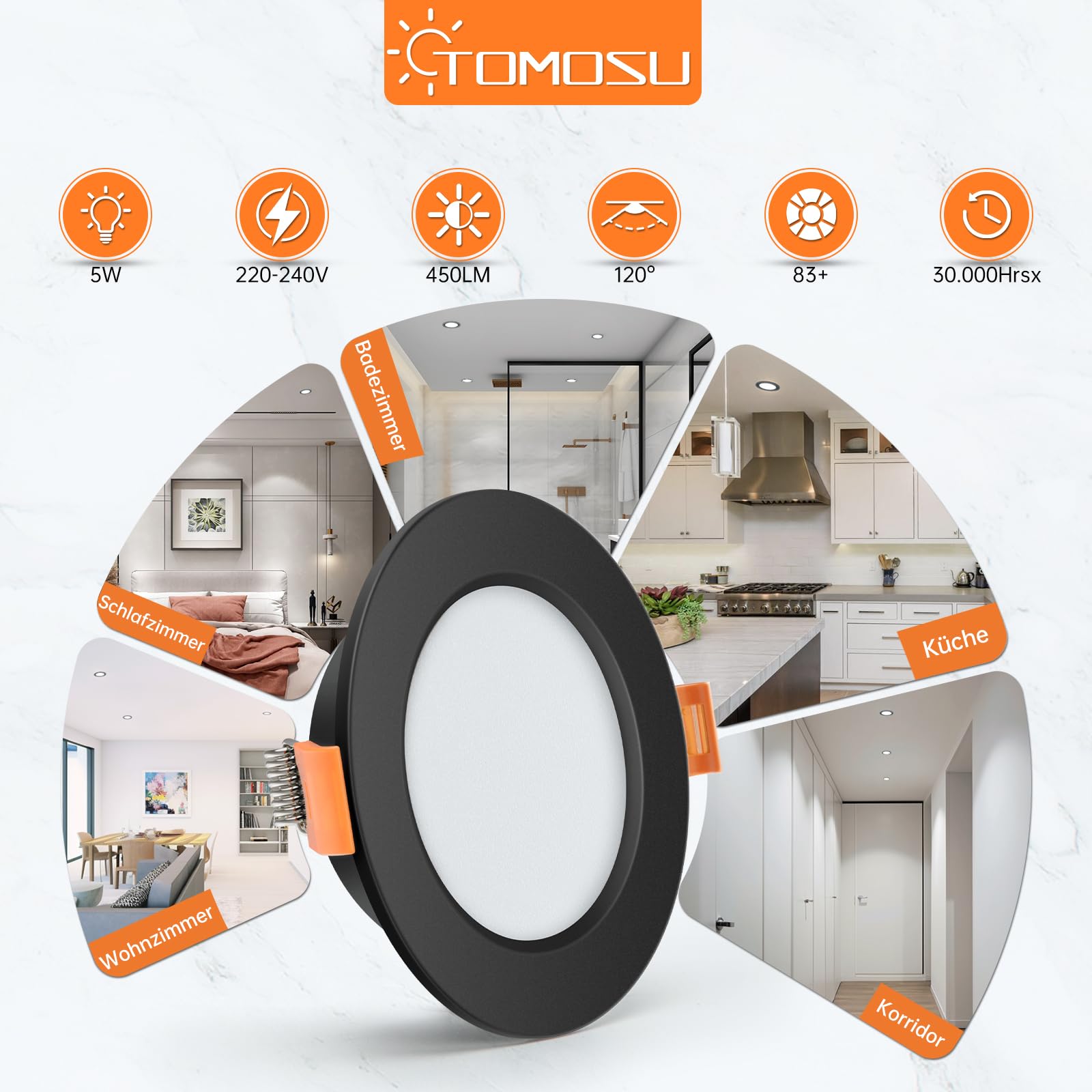Tomosu LED Einbaustrahler Set 20 Stk. 230V Schwarz 4000K IP44
