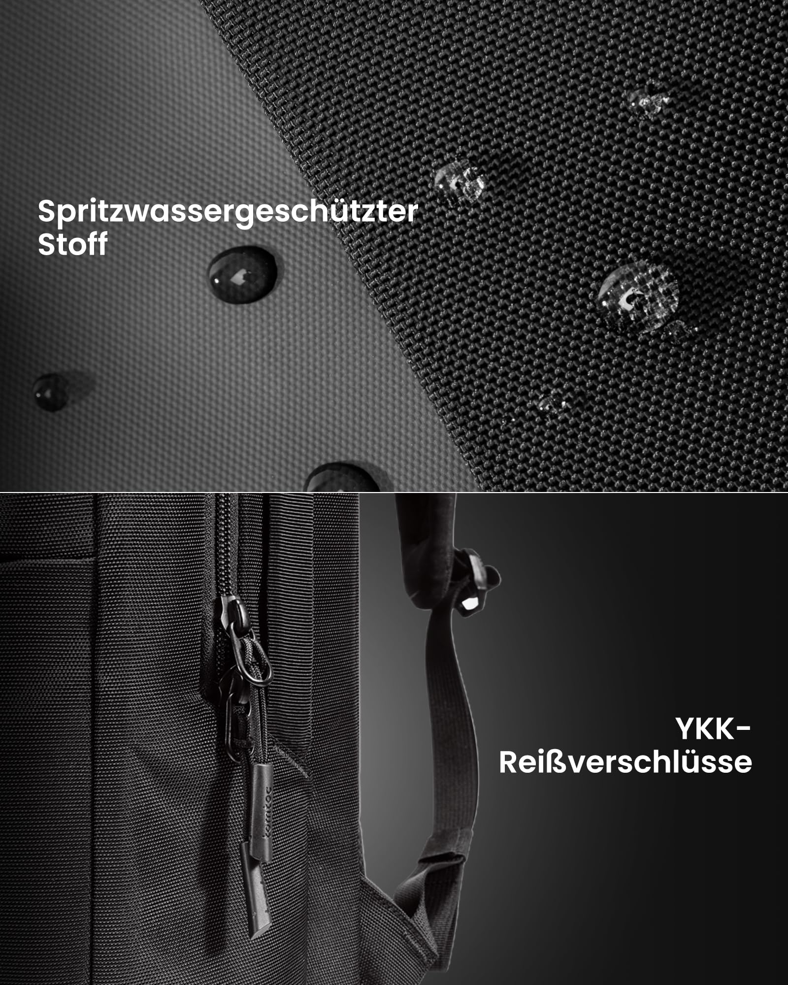 - Robuste Materialien: Gefertigt aus strapazierfähigem, spritzwassergeschütztem Polyestergewebe und ausgestattet mit langlebigen YKK-Reissverschlüssen.