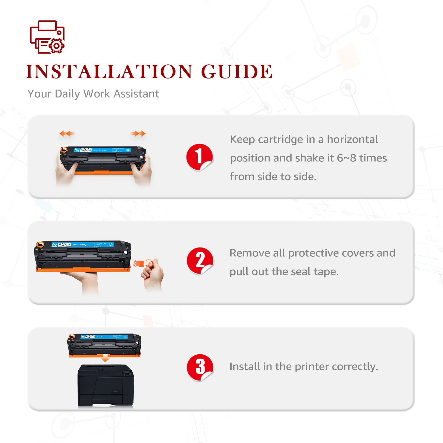 Diese Kartuschen sind für eine Vielzahl von HP und Canon Druckern konzipiert, darunter die Serien HP LaserJet Pro 200 Color (M251n, M276nw), HP Color LaserJet (CP1215, CM1312) und Canon i-Sensys (LBP5050, MF8050CN). Sie dienen als Alternative für die Modellreihen HP 131X, 131A, 128A und 125A.