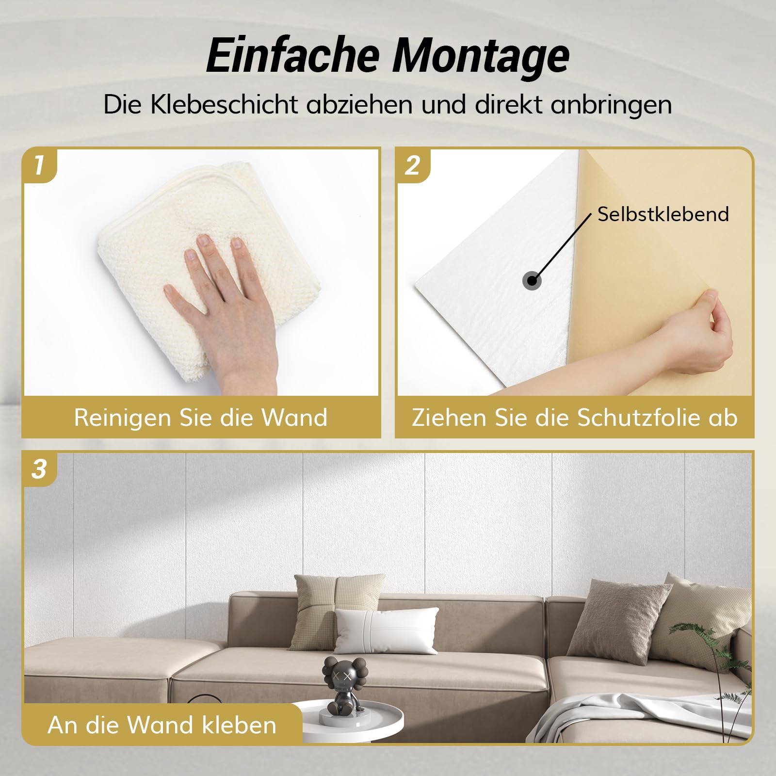 - Selbstklebende Rückseite: Dank der starken, bereits angebrachten Klebefläche ist die Montage kinderleicht – einfach die Schutzfolie abziehen und die Paneele auf einer glatten Oberfläche anbringen, ganz ohne zusätzliches Klebeband.