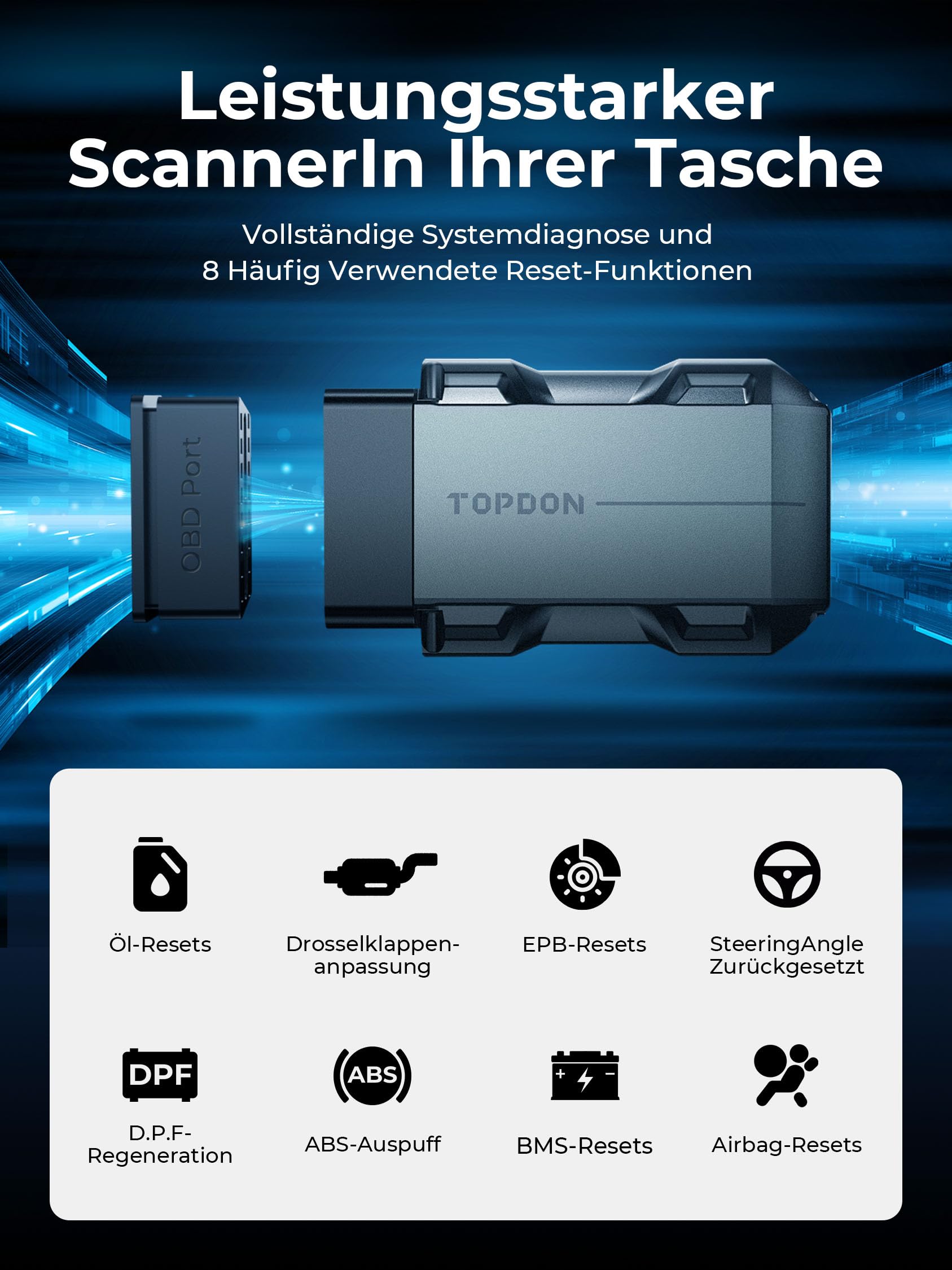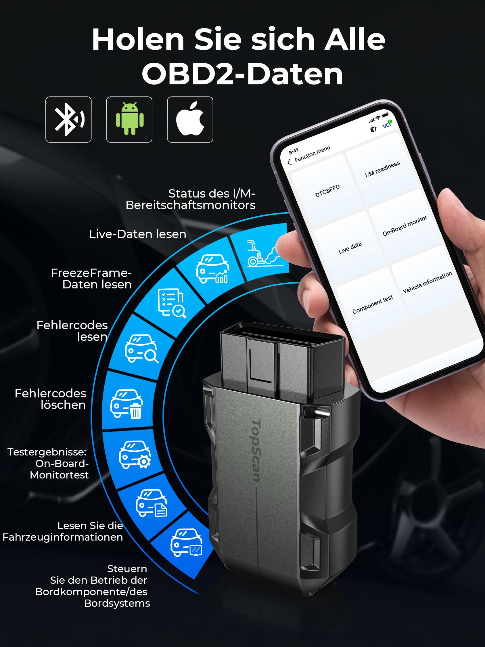 Der Topscan ist somit der ideale Begleiter für alle, die eine schnelle, zuverlässige und tiefgehende Fahrzeugdiagnose direkt über ihr Smartphone durchführen möchten.