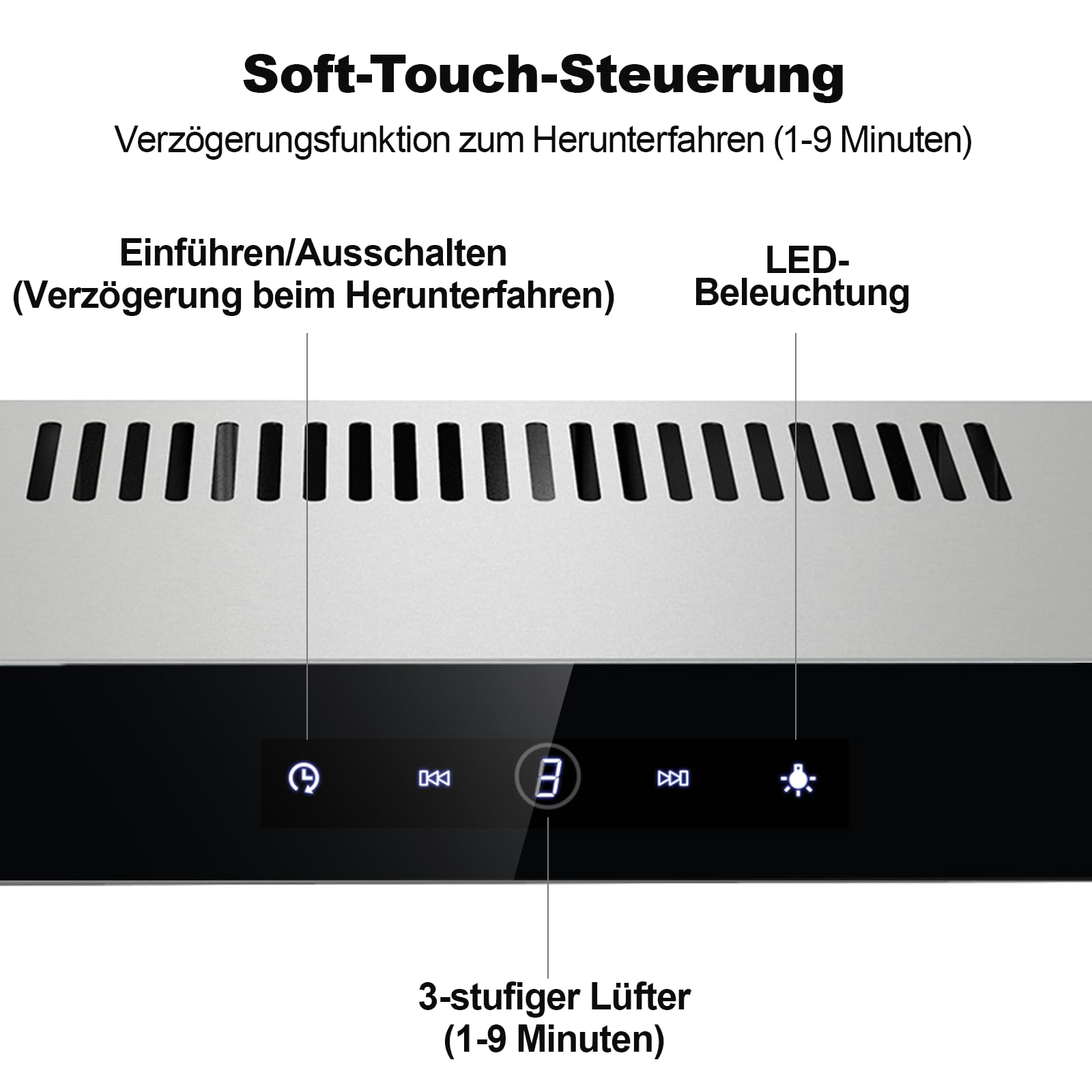 - Nachlaufautomatik: Praktische Abschaltverzögerung von 1 bis 9 Minuten zur vollständigen Beseitigung von Restdämpfen.