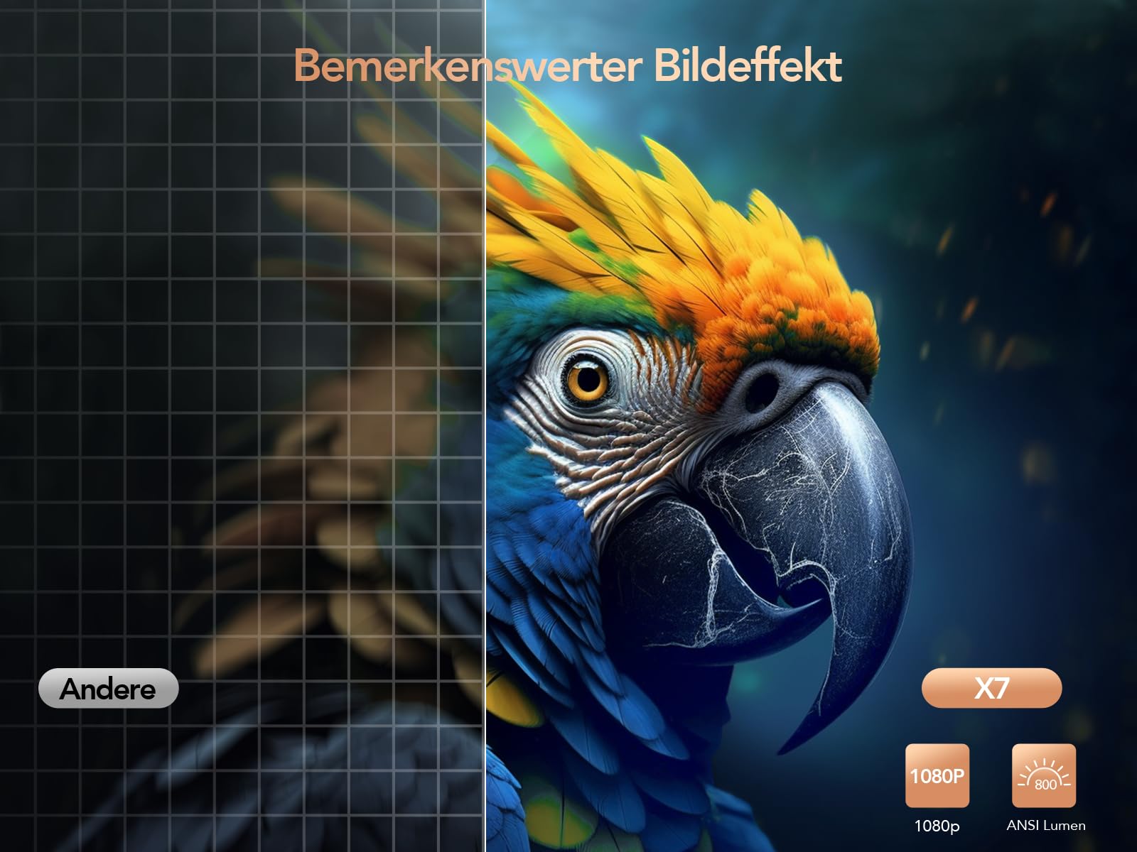 Die native Full-HD-Auflösung sorgt für eine beeindruckende Detailtiefe und Klarheit auf einer Leinwand von bis zu 300 Zoll. Die fortschrittliche Bildverarbeitungstechnologie liefert satte Farben und tiefe Kontraste, die Ihre Filme und Serien zum Leben erwecken.