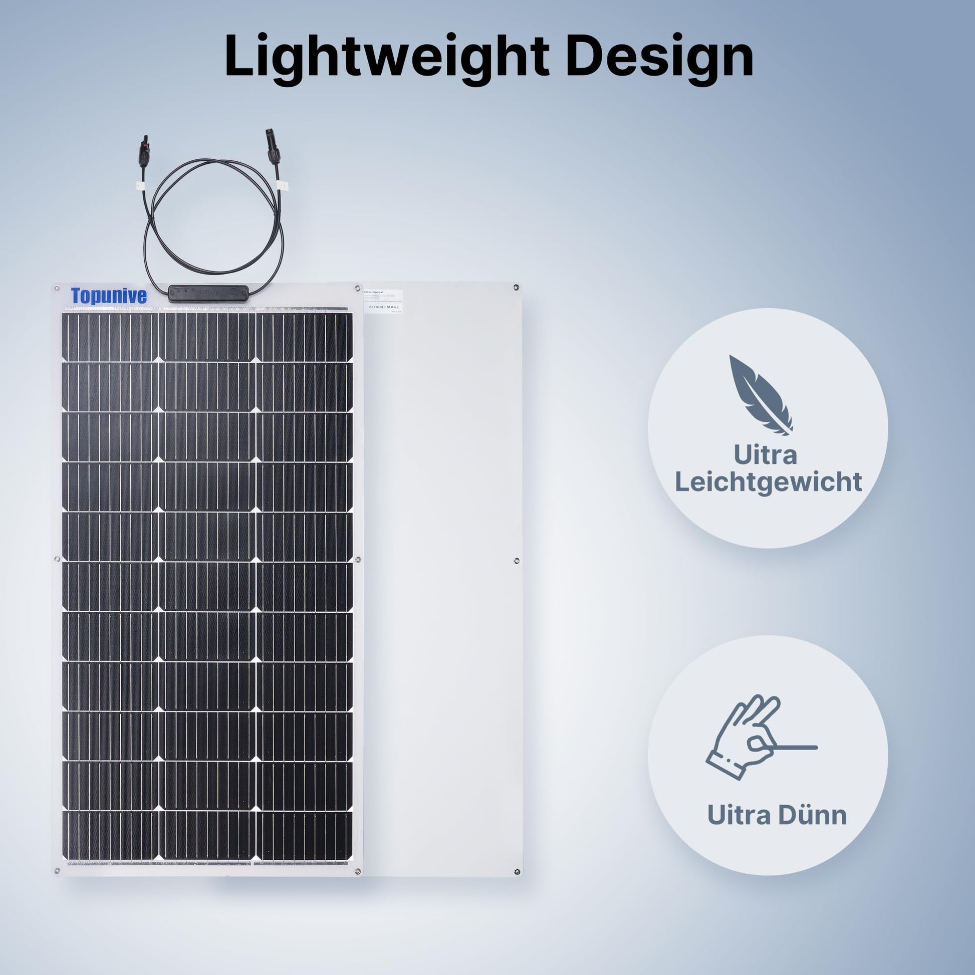 - Leicht und flach: Jedes Modul wiegt lediglich 2 kg und ist mit 3 mm extrem dünn, was den Transport und die Montage erheblich vereinfacht.