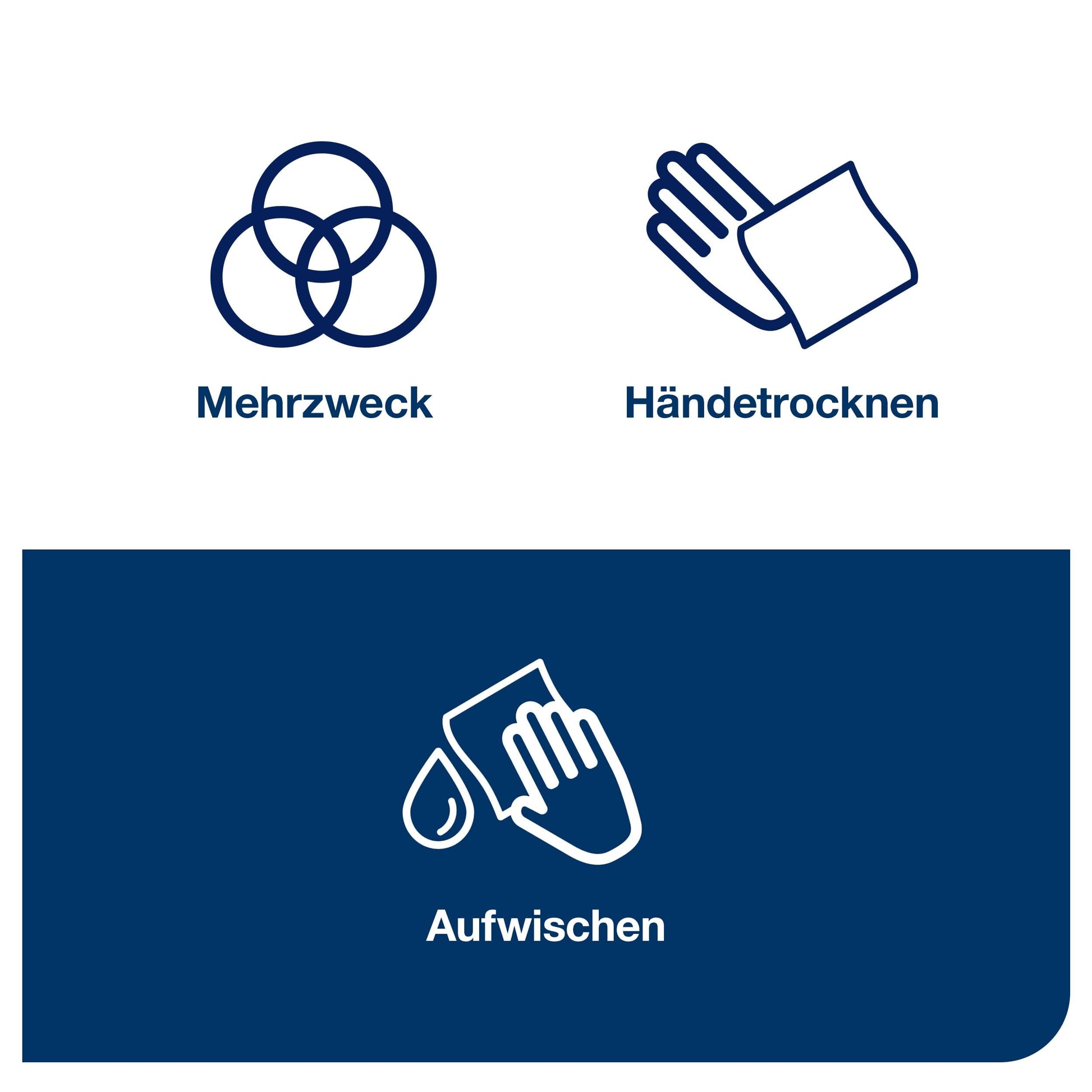 Als robuste, zweilagige Mehrzwecktücher sind sie ideal für das Aufwischen von Flüssigkeiten, die allgemeine Oberflächenreinigung und die Handreinigung in professionellen Umgebungen wie Werkstätten, Küchen oder im Gesundheitswesen.