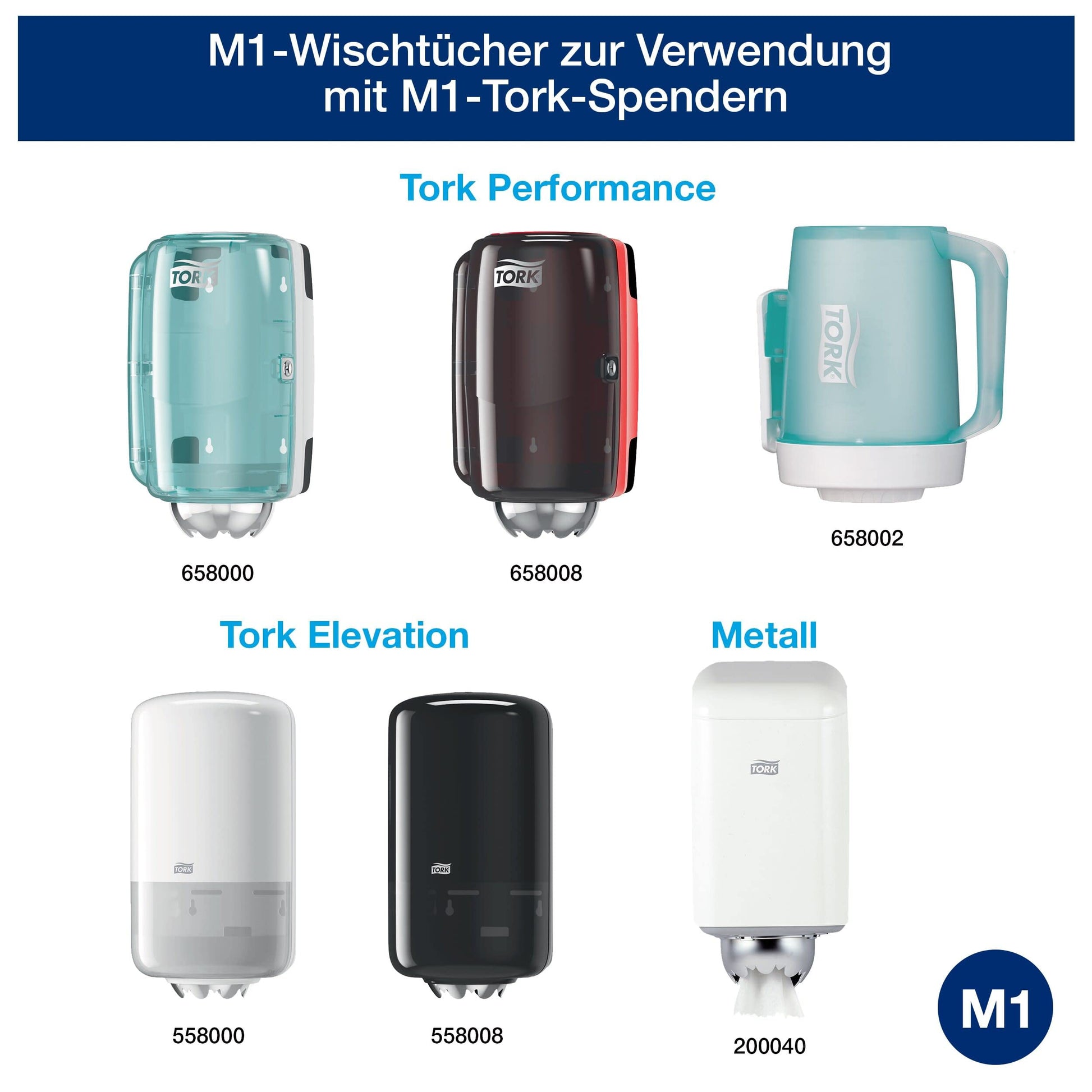 Die Papierwischtücher sind perfekt auf den Tork M1 Mini Innenabrollungsspender abgestimmt. Dieses System stellt eine kompakte und vielseitige Lösung dar, wo immer sowohl Hände als auch Oberflächen gereinigt werden müssen. Es ermöglicht eine besonders benutzerfreundliche, einhändige Entnahme der Tücher.