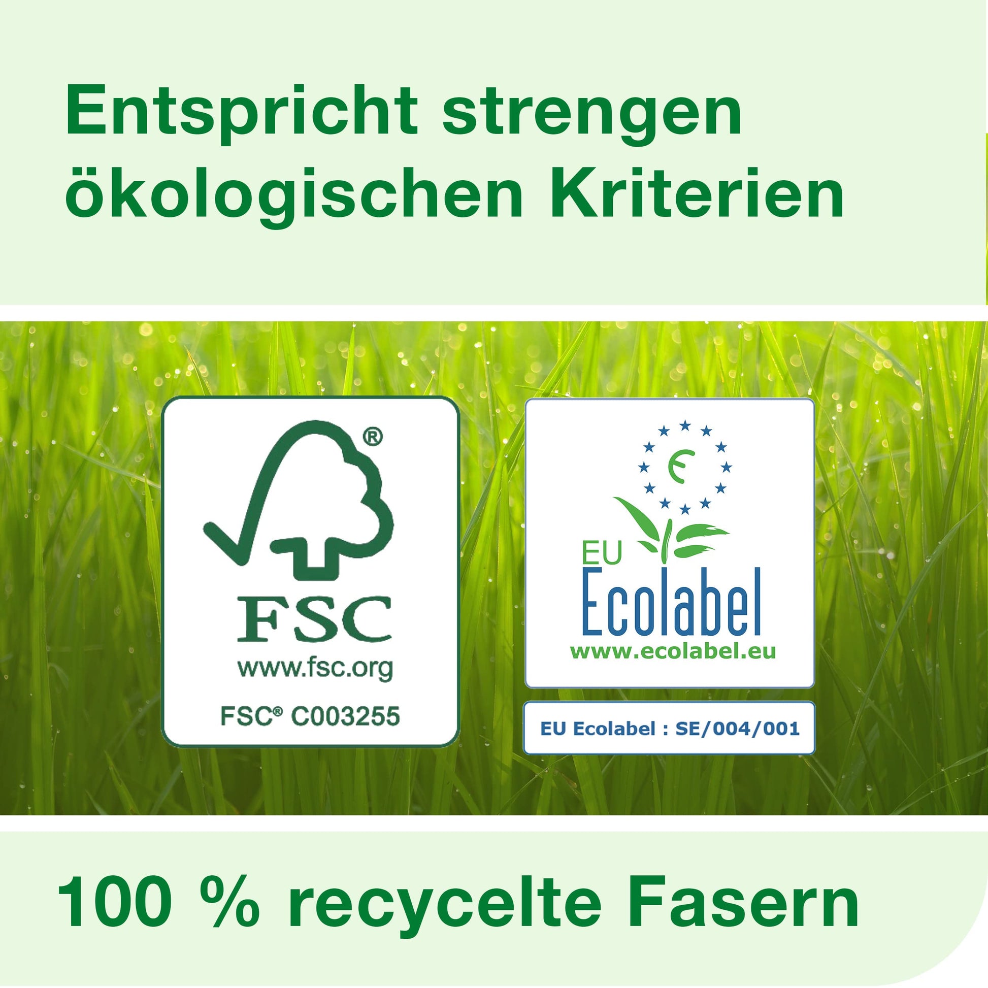 Die intelligente Zickzackfalz (Multifold) sorgt nicht nur für ein Plus an Hygiene, da Nutzer nur das eigene Handtuch berühren, sondern reduziert auch spürbar den Abfall und die Betriebskosten. Die weiche Qualität fühlt sich angenehm auf der Haut an, ist dabei aber reissfest und effizient. Mit Zertifizierungen wie dem FSC-Siegel und dem EU Ecolabel treffen Sie eine umweltbewusste Wahl. Die ISEGA-Zertifizierung bestätigt zudem die Eignung für den kurzzeitigen Kontakt mit Lebensmitteln.