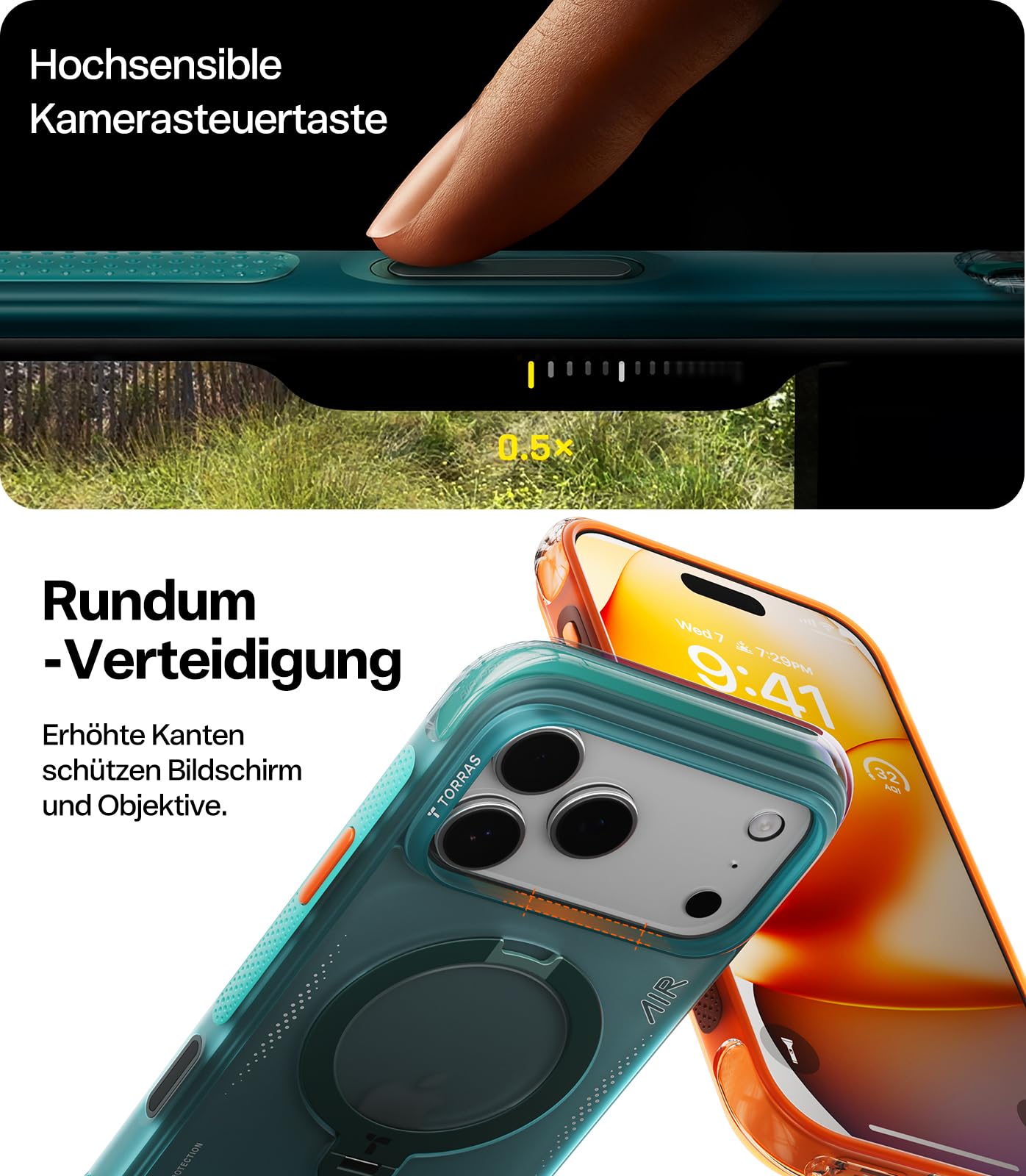 Die TORRAS Ostand Q3 Air Hülle bietet Ihrem iPhone 17 Pro nicht nur erstklassigen Schutz, sondern erweitert seine Funktionalität durch ein innovatives und durchdachtes Design. Sie kombiniert Sicherheit auf Militärniveau mit aussergewöhnlicher Flexibilität für den modernen Alltag.