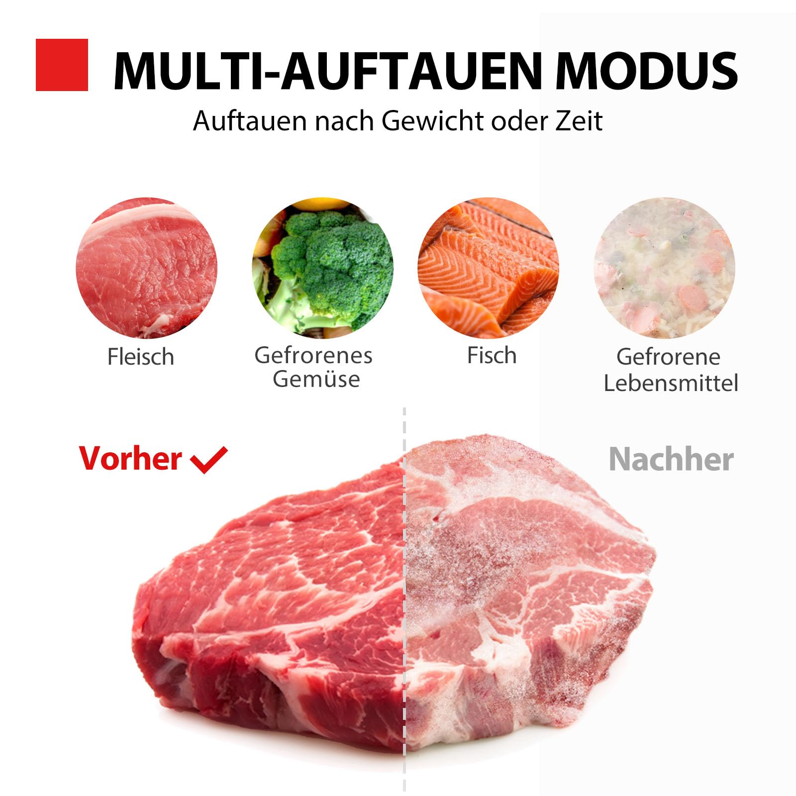 - Praktische Extras: Beinhaltet eine Kindersicherung, Auftaufunktion nach Gewicht oder Zeit sowie eine integrierte Uhr und einen Küchentimer.